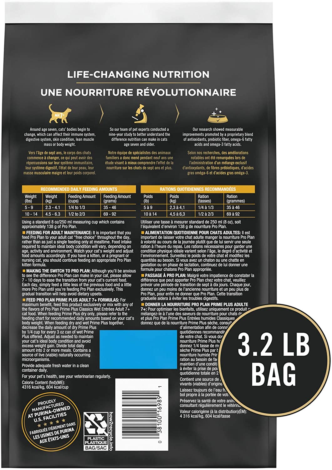 Purina Pro Plan Senior Dry Cat Food With Probiotics for Cats. Chicken and Rice Formula - 3.2 lb. Bag