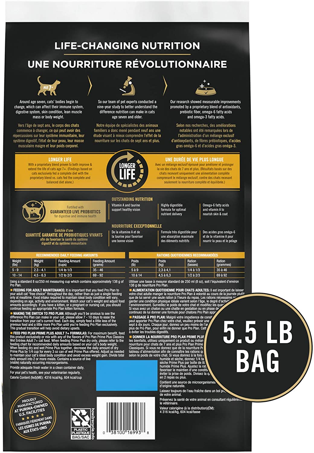 Purina Pro Plan Senior Dry Cat Food With Probiotics for Cats. Chicken and Rice Formula - 5.5 lb. Bag