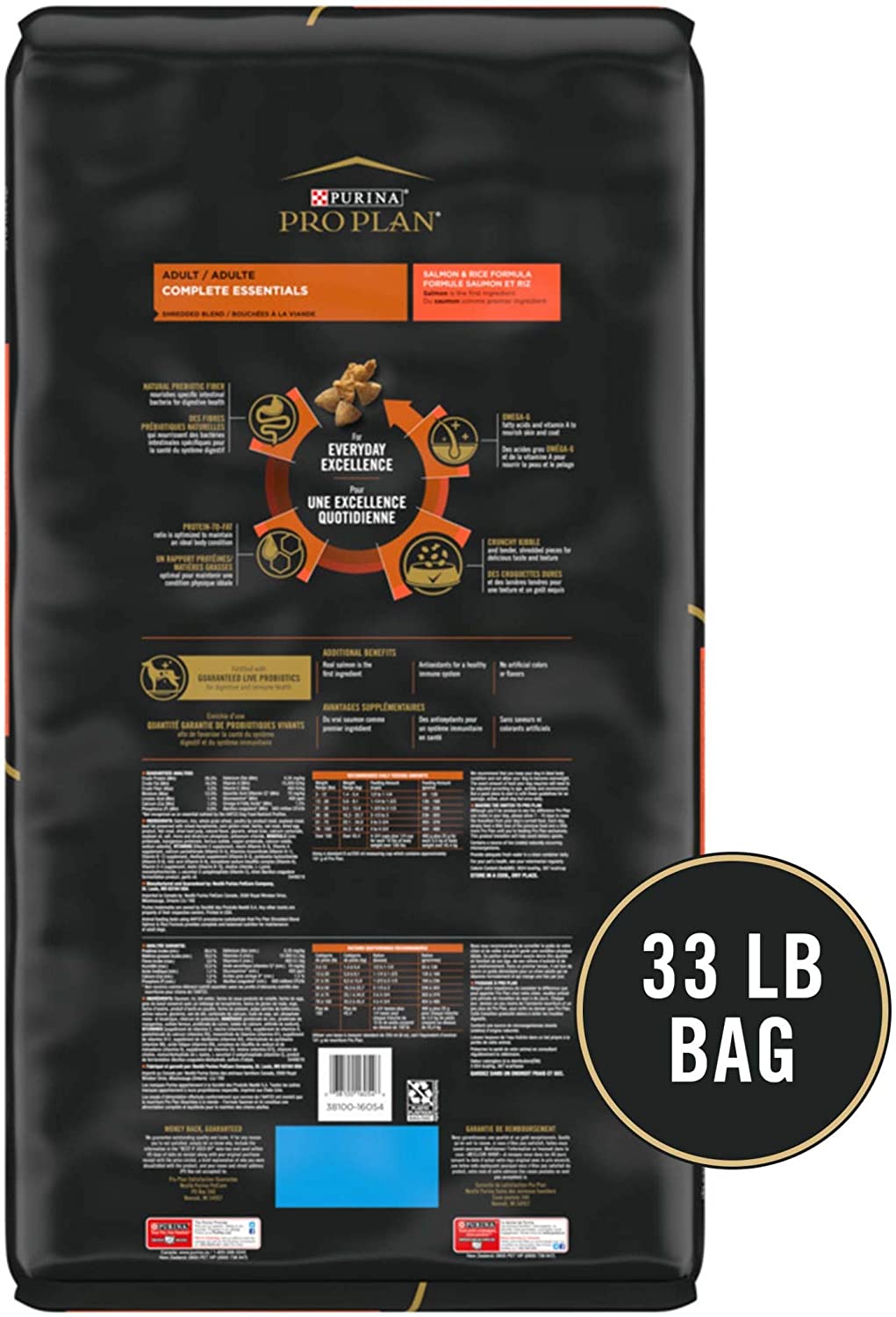 Purina Pro Plan High Protein Dry Dog Food With Probiotics for Dogs. Shredded Blend Salmon and Rice Formula - 33 lb. Bag