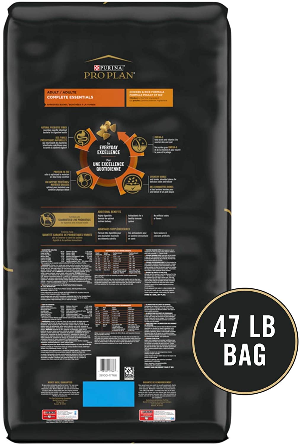 Purina Pro Plan High Protein Dry Dog Food With Probiotics for Dogs. Shredded Blend Chicken & Rice Formula - 47 lb. Bag