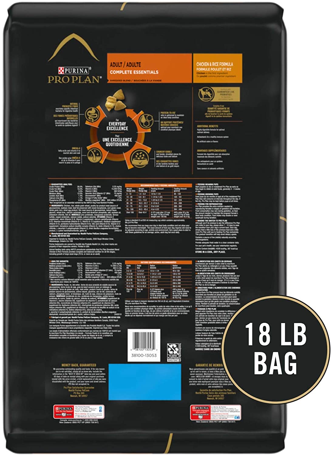 Purina Pro Plan High Protein Dry Dog Food With Probiotics for Dogs. Shredded Blend Chicken and Rice Formula - 18 lb. Bag