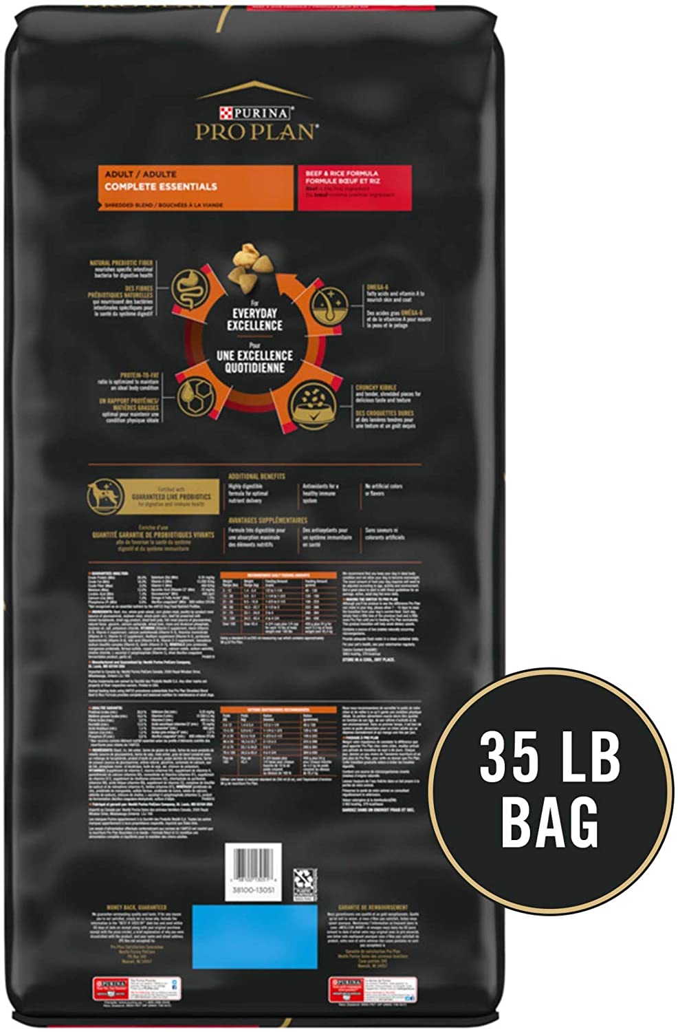 Purina Pro Plan High Protein Dry Dog Food With Probiotics for Dogs. Shredded Blend Beef and Rice Formula - 35 lb. Bag
