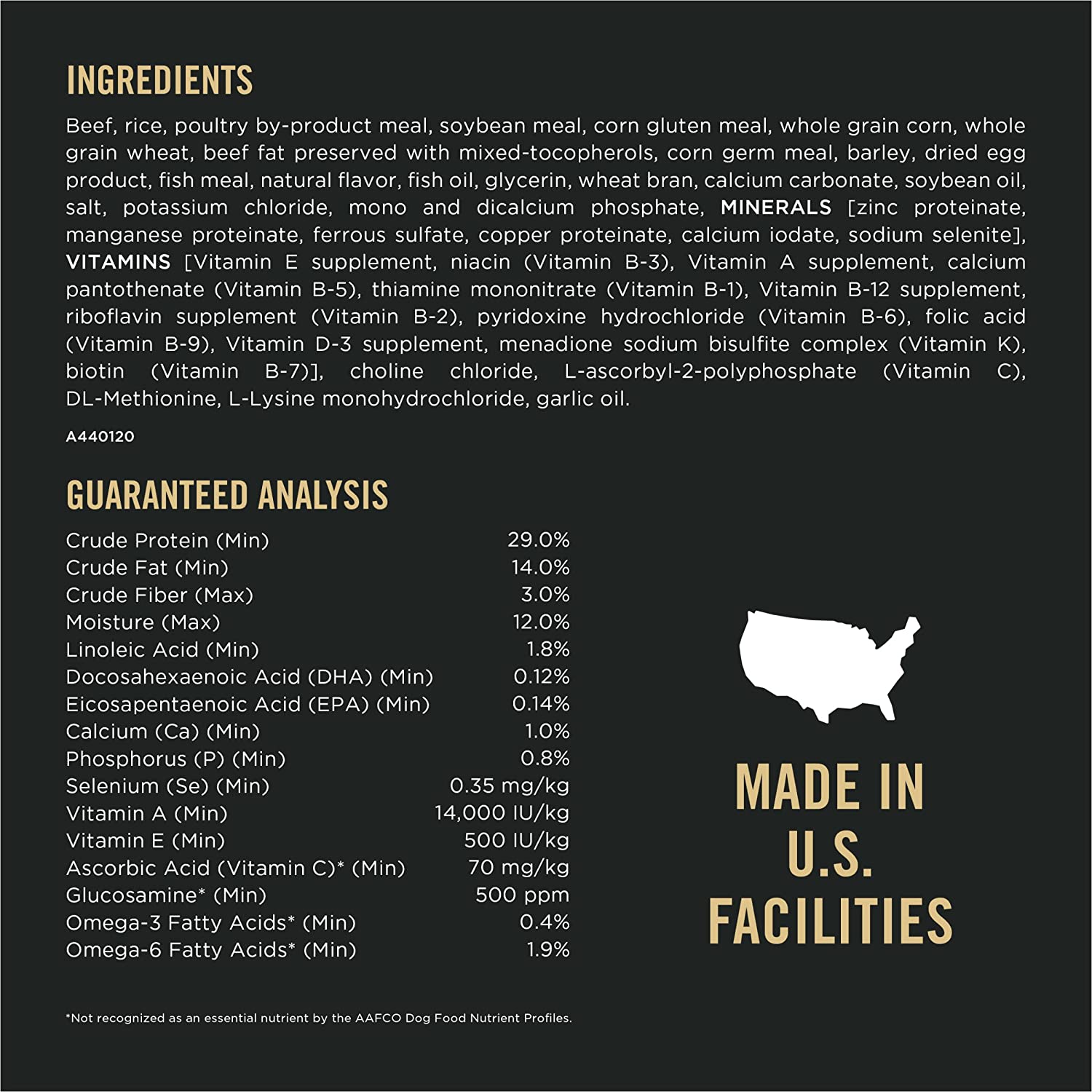 Purina Pro Plan Adult 7+ Complete Essentials Shredded Blend Beef and Rice Formula High Protein Dry Dog Food for Senior Dogs - 34 lb. Bag