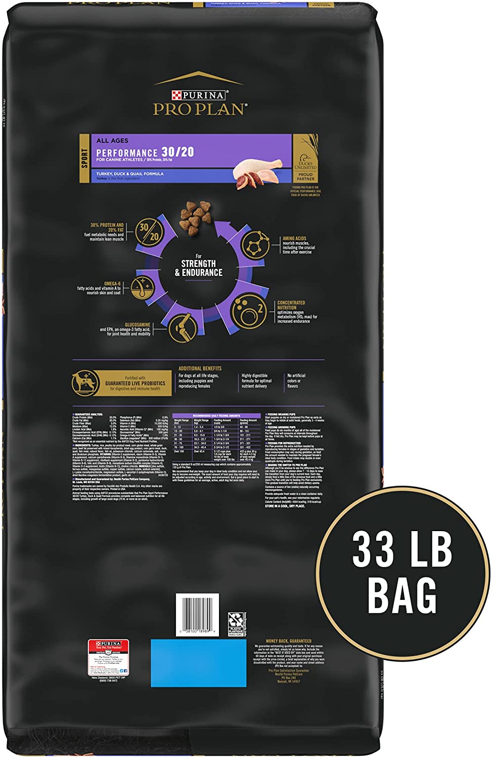Purina Pro Plan Sport Performance 30/20 Turkey. Duck and Quail Formula Dry Dog Food 33 lb. Bag