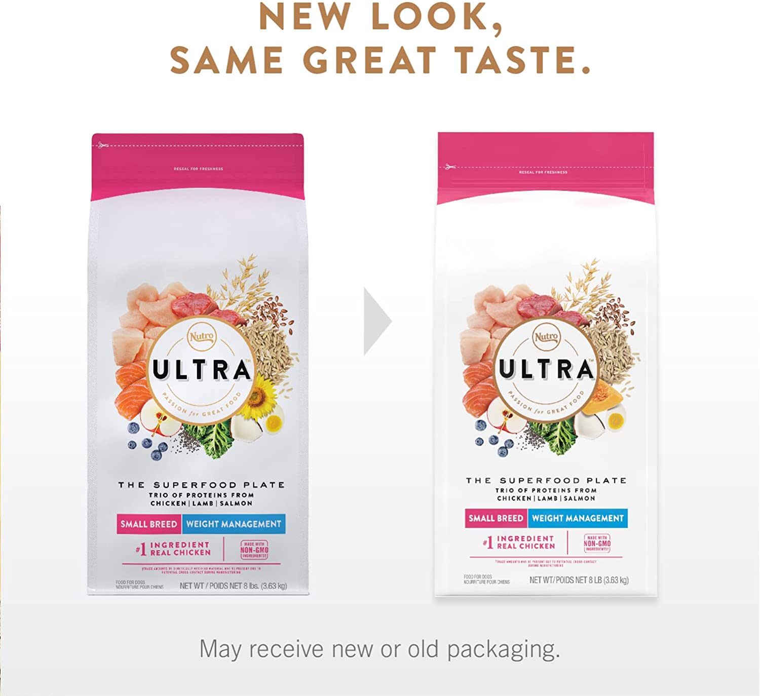 NUTRO ULTRA Adult Weight Management High Protein Natural Small Breed Dry Dog Food for Weight Contol with a Trio of Proteins from Chicken. Lamb and Salmon. 8 lb. Bag