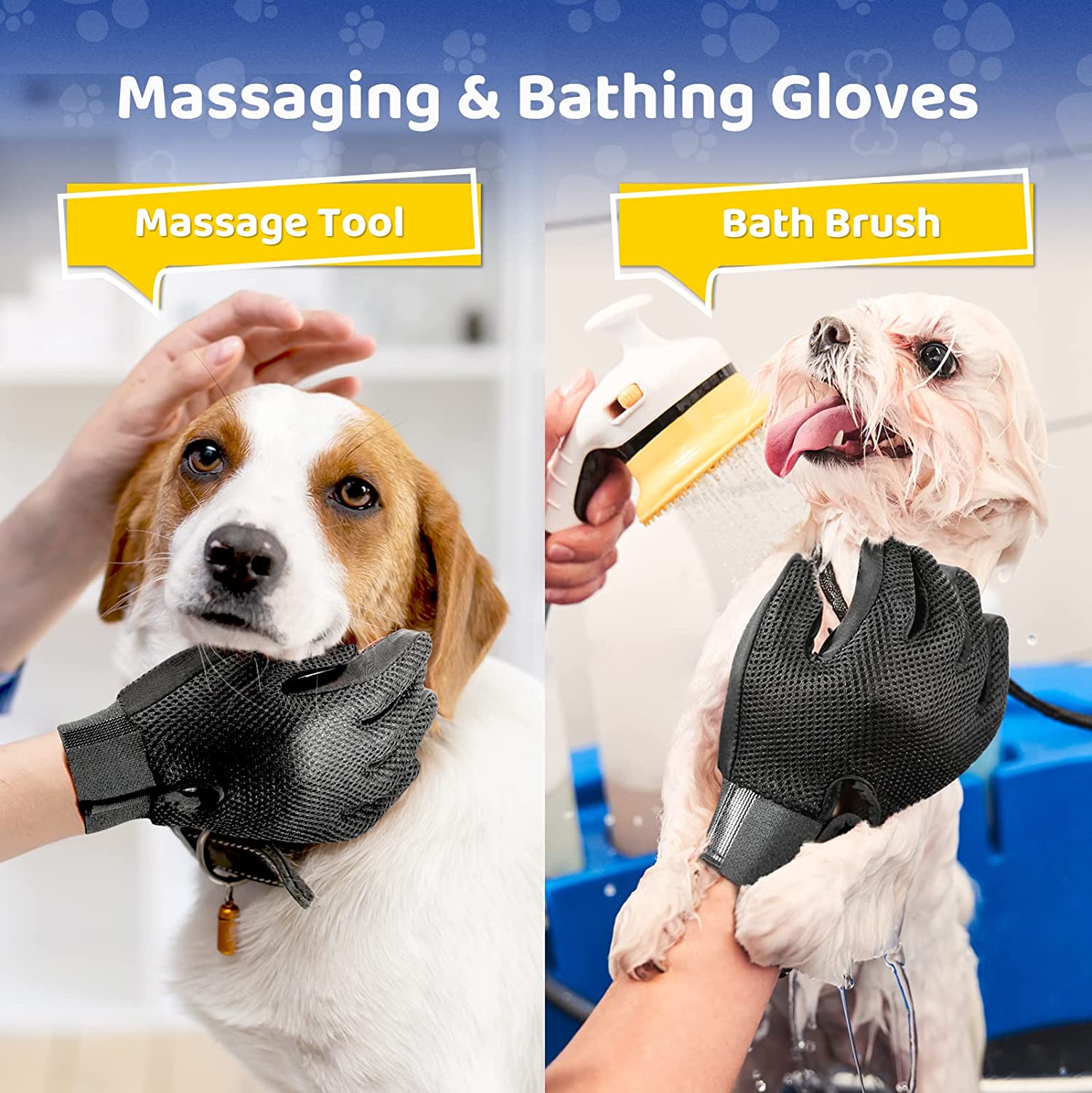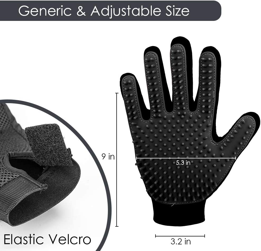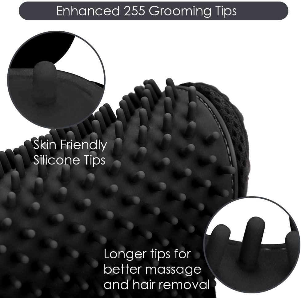 Pet Grooming Glove Black - Gentle Deshedding Brush Glove - Efficient Pet Hair Remover Mitt - Enhanced Five Finger Design - Perfect for Dog and Cat with Long & Short Fur 1 Pair
