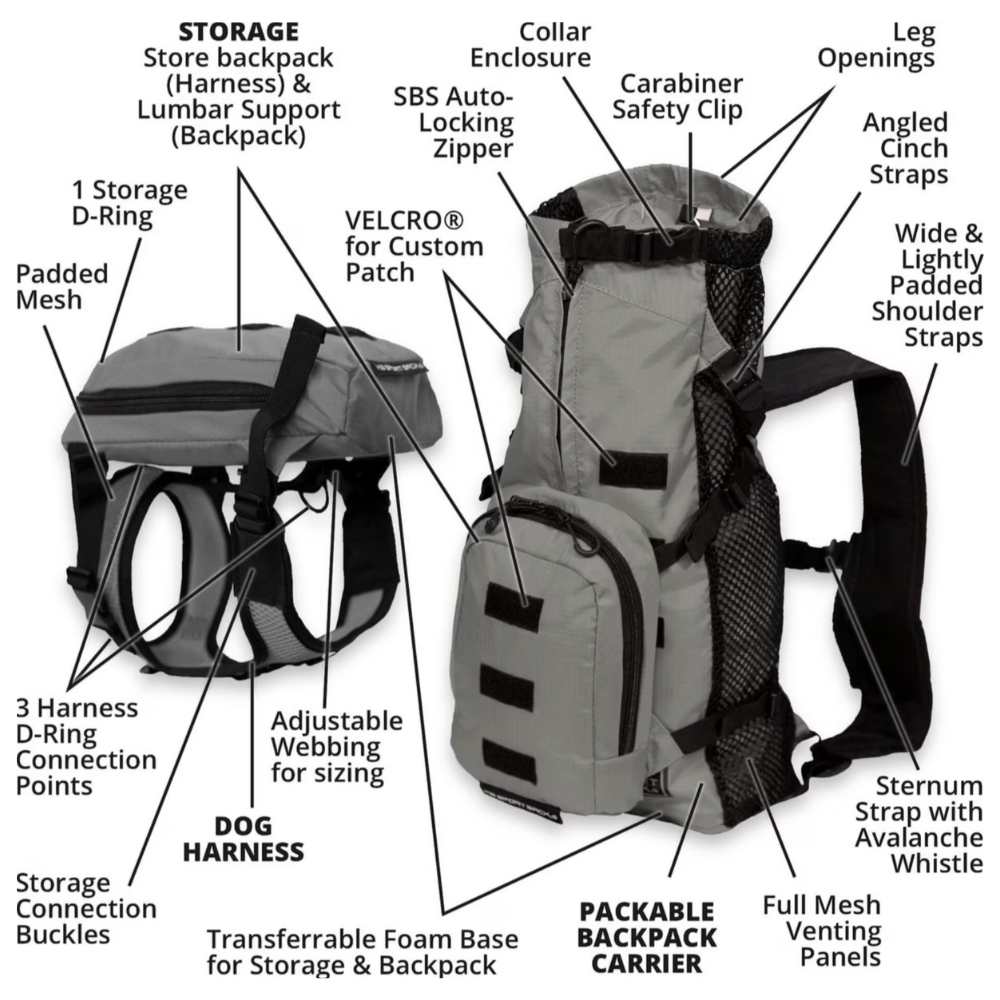 K9 Sport Sack Grey Walk-On Packable Backpack Dog Carrier. Small