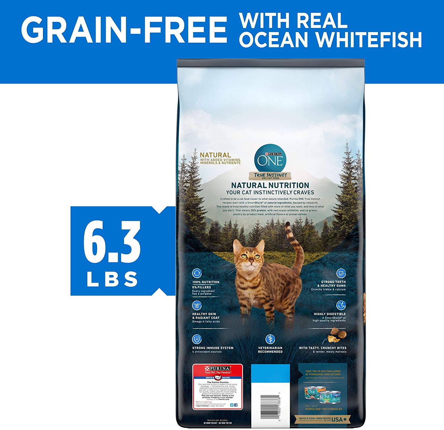 Purina ONE Grain Free Dry Cat Food Natural High Protein. True Instinct With Real Ocean Whitefish 6.3 lb. Bag