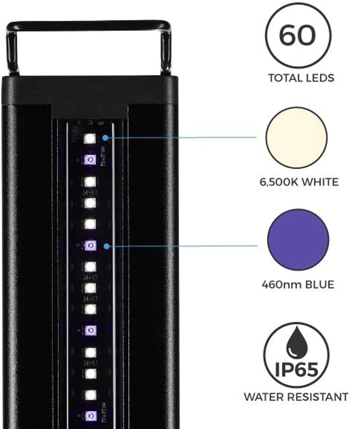 Koval Aquarium Lighting Fish Tank Light Hood with Extendable Brackets. White and Blue LEDs. 45″ - 50″. 156 LEDs