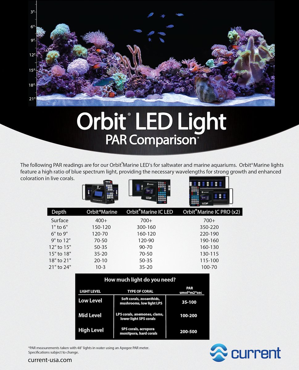 Current USA Orbit Marine IC LED Reef Aquarium Light | 24 Hour IR Lighting & Wave Pump Control | Adjustable Color Spectrum. 24″ - 36″