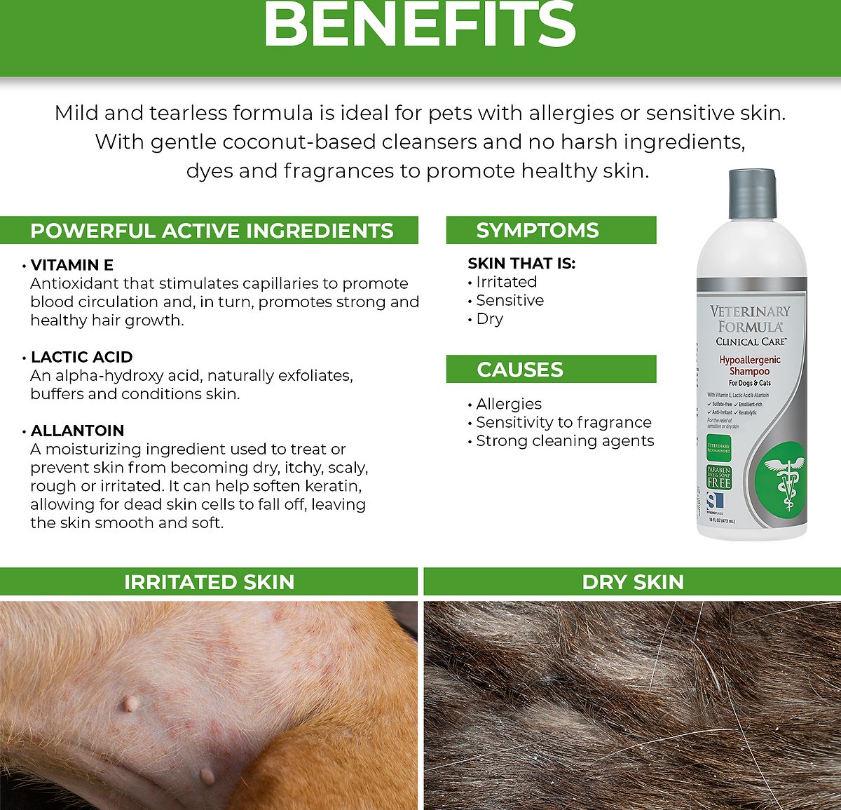 Veterinary Formula Clinical Care Hypoallergenic Shampoo for Dogs and Cats - No Harsh Ingredients – Pet Shampoo for Allergies and Sensitive Skin. Promotes Healthy Skin and Coat (1-gal bottle)