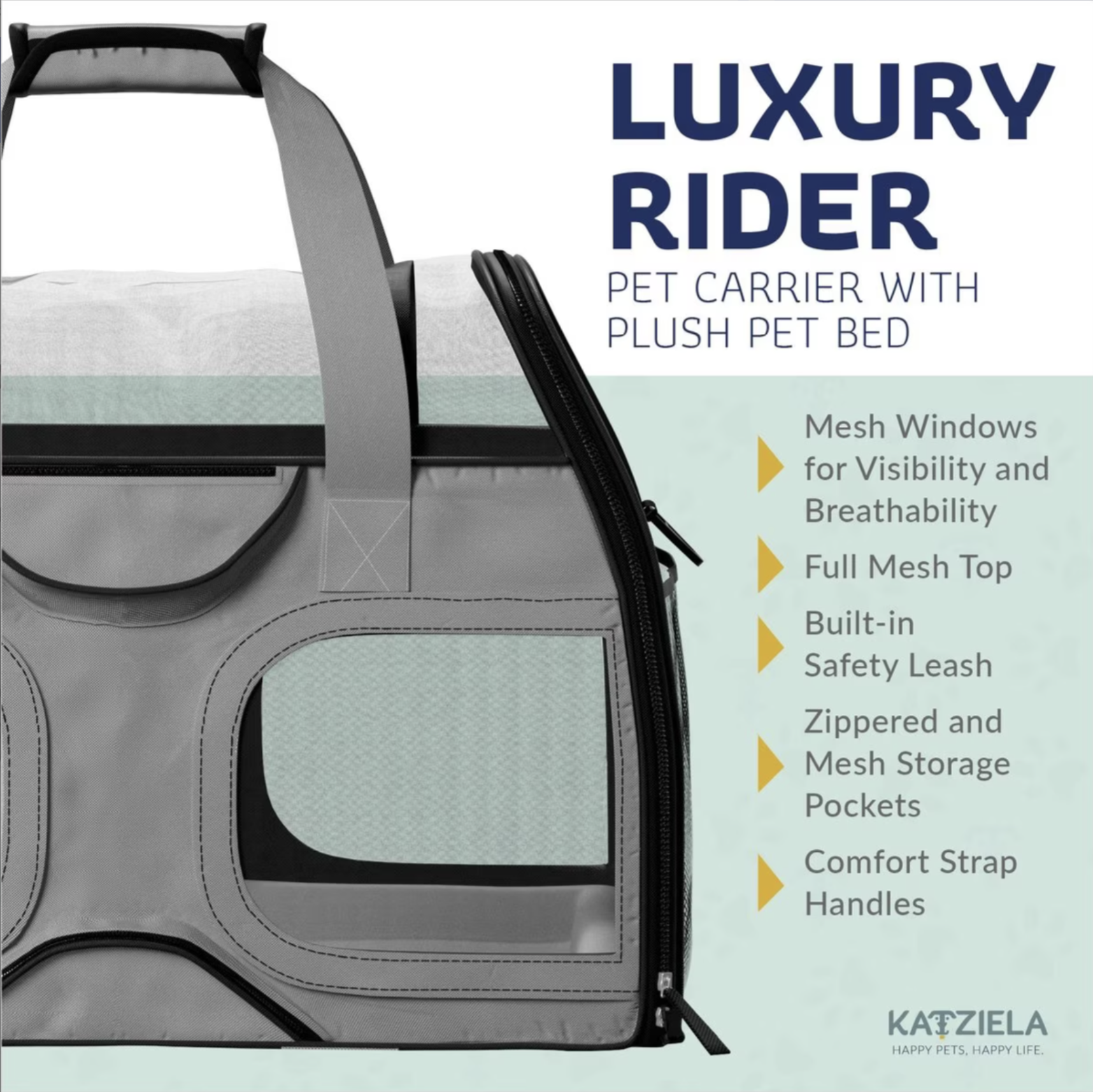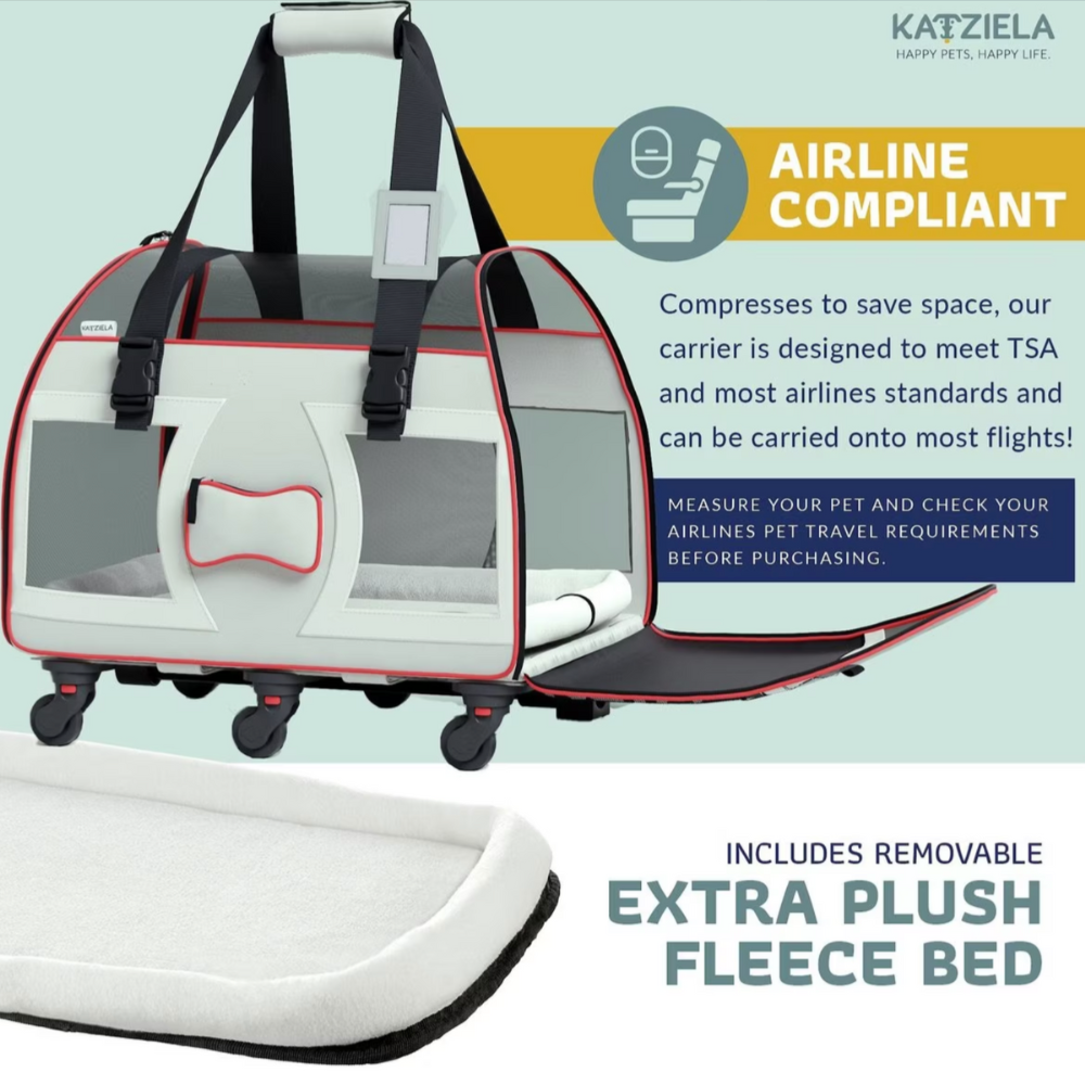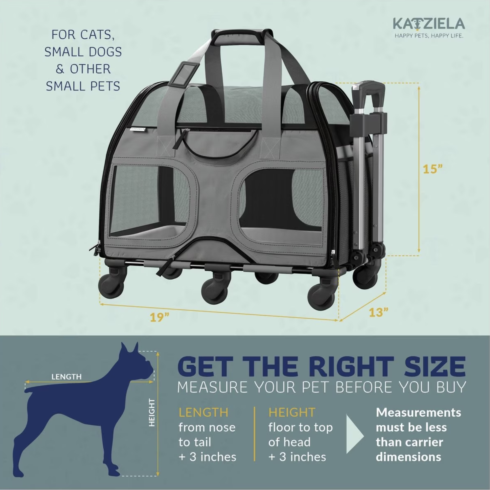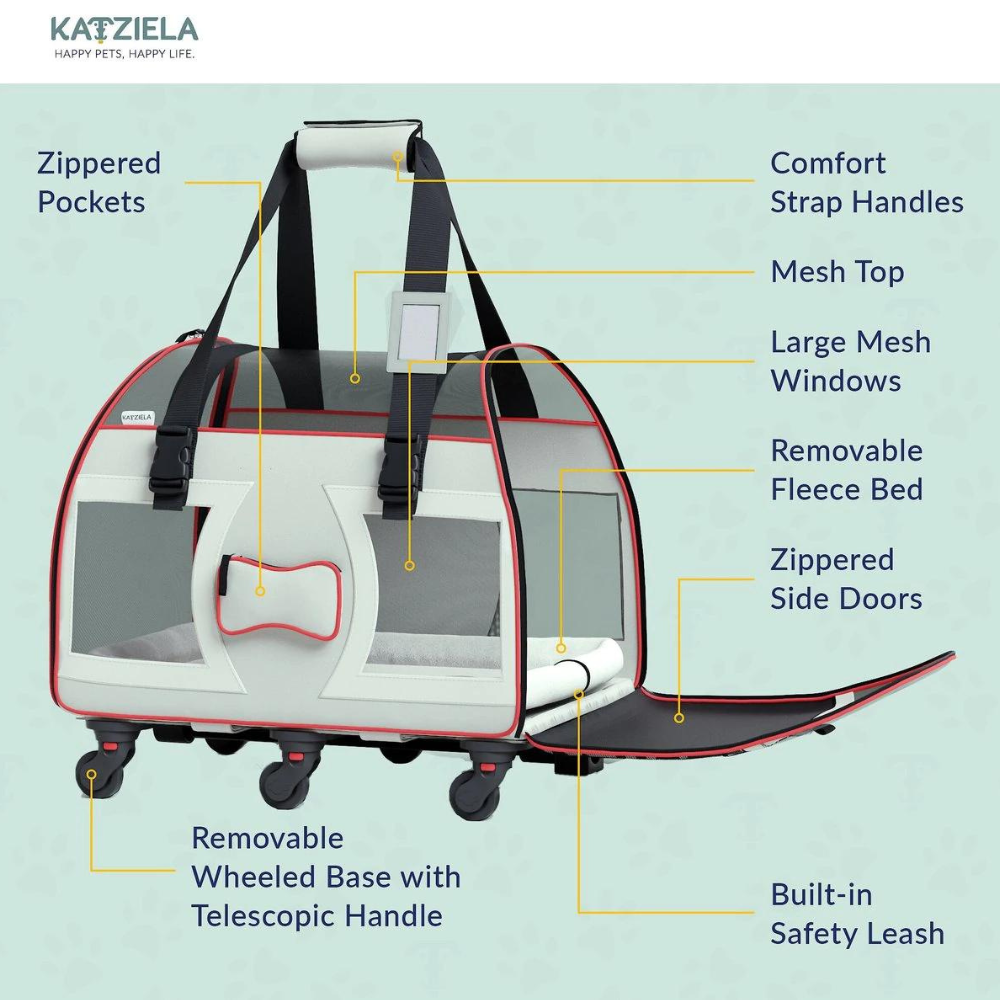 Katziela Luxury Rider Pro Removable Wheels & Double Telescopic Handle Cat & Dog Carrier. Gray