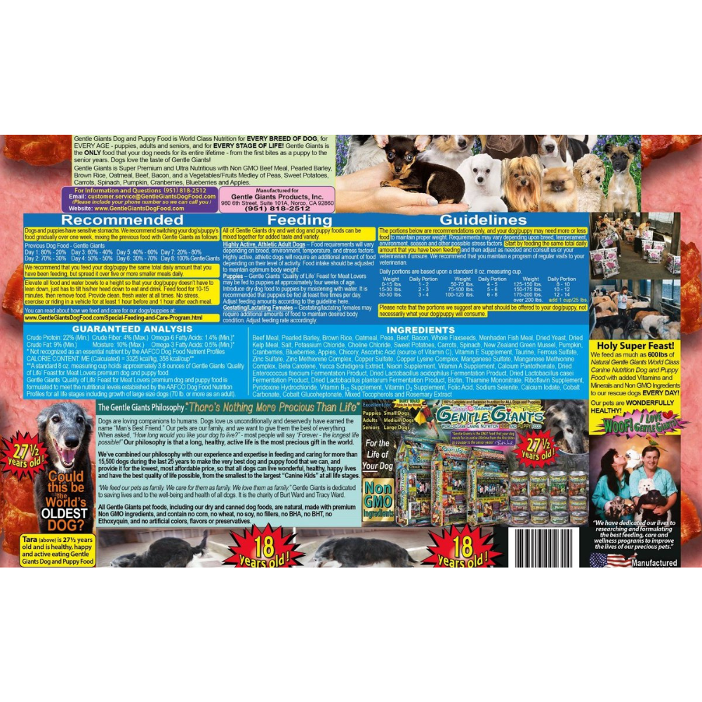 Gentle Giants Natural Non-GMO Dog & Puppy Beef & Bacon Dry Dog Food. 24-lb bag