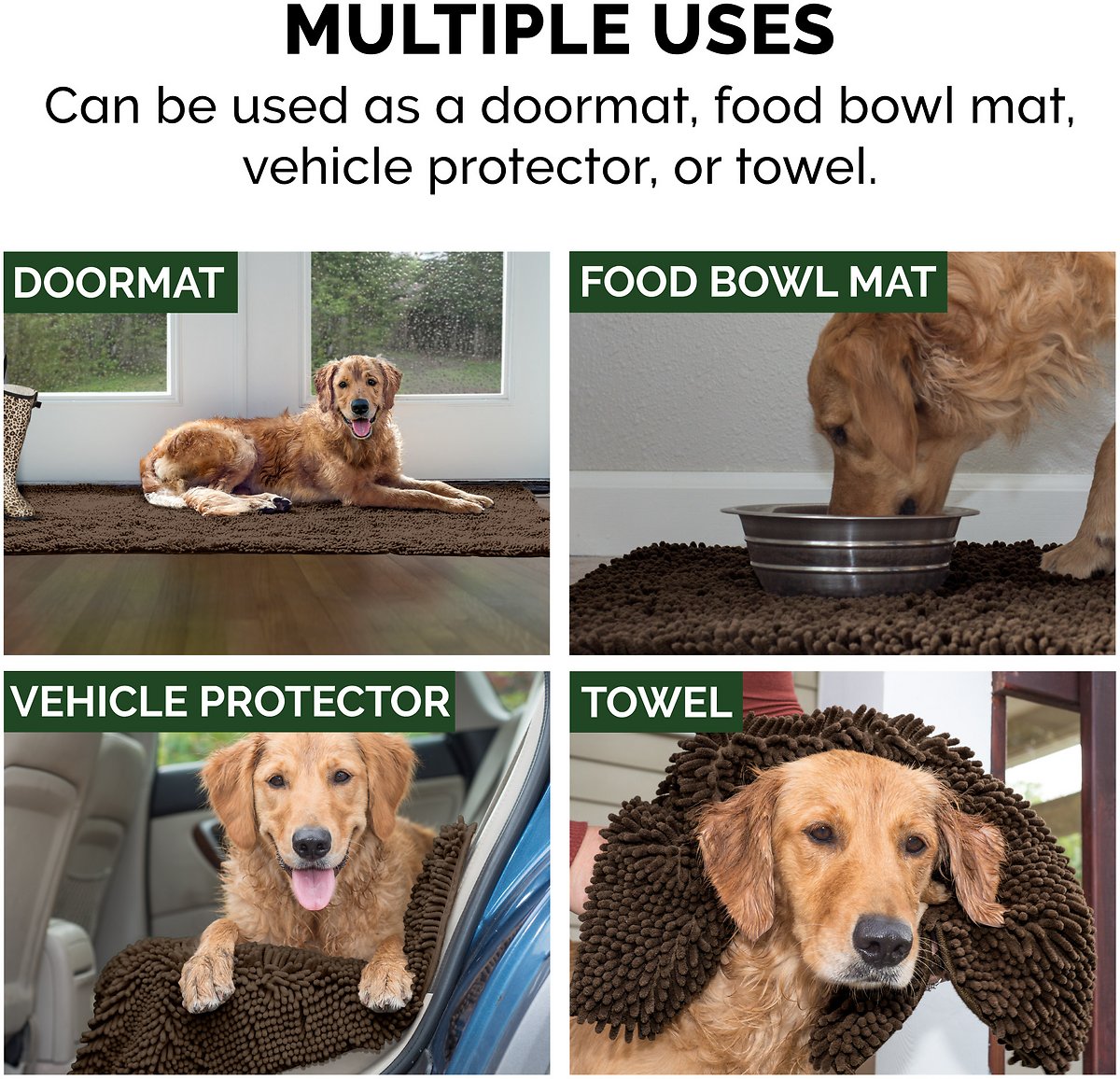 FurHaven Muddy Paws Towel & Shammy Dog Mat - Muddy Paws Absorbent Chenille Shammy Bath Towel and Food Mat Rug. Mud (Brown). Jumbo Plus
