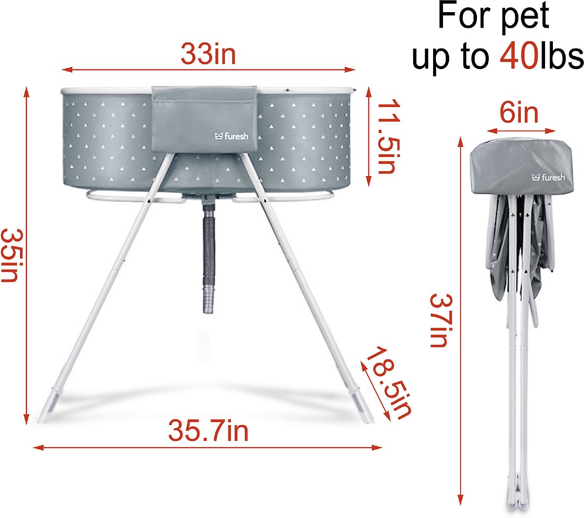 Furesh Elevated Folding Pet Bath Tub & Wash Station for Bathing. Shower. and Grooming. Collapsible. Indoor and Outdoor. Perfect for Small and Medium Size Dogs. Cats and Other Pet (Gray)