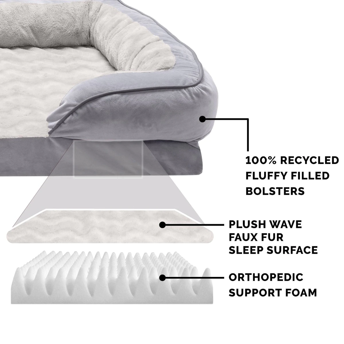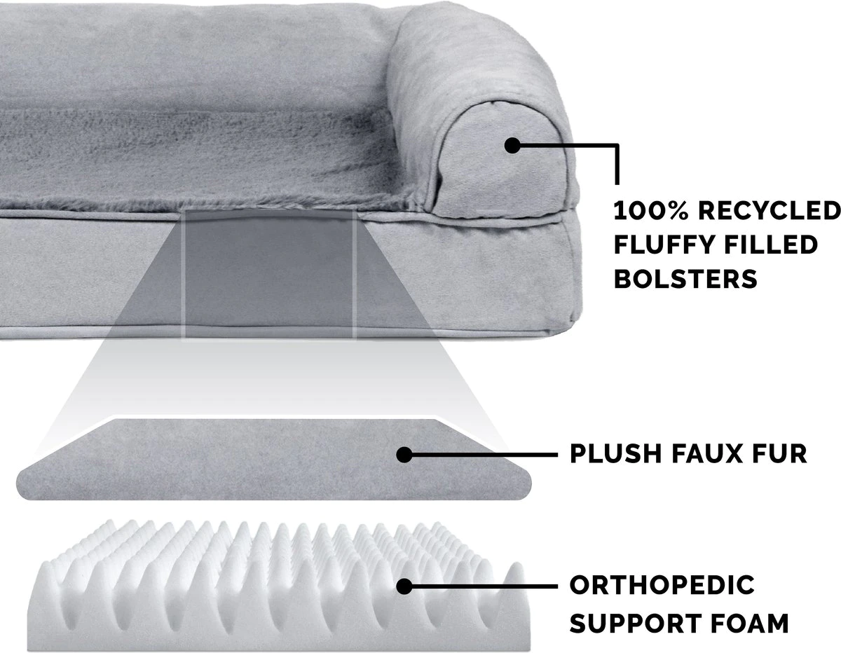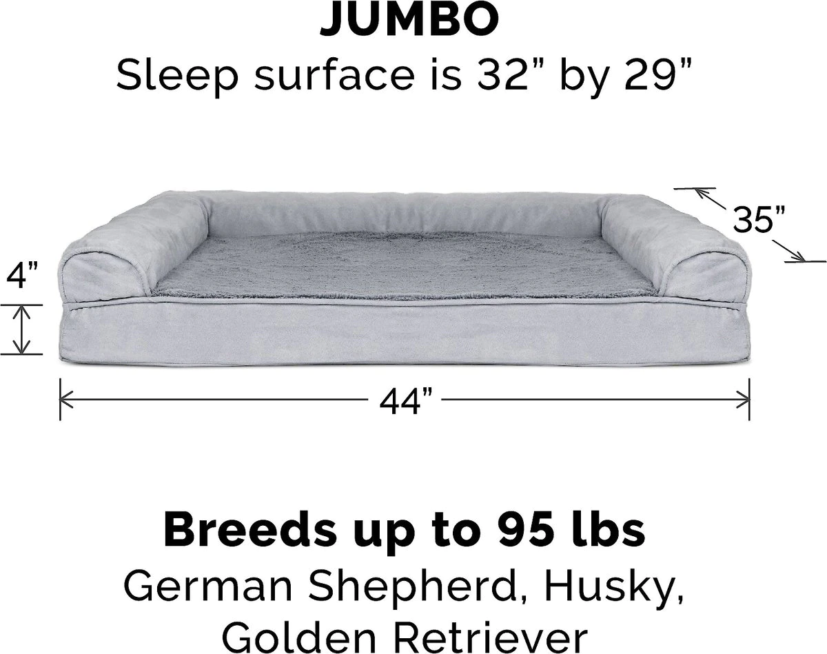 FurHaven Comfy Couch Orthopedic Bolster Dog Bed w/Removable Cover - Diamond Blue. Jumbo