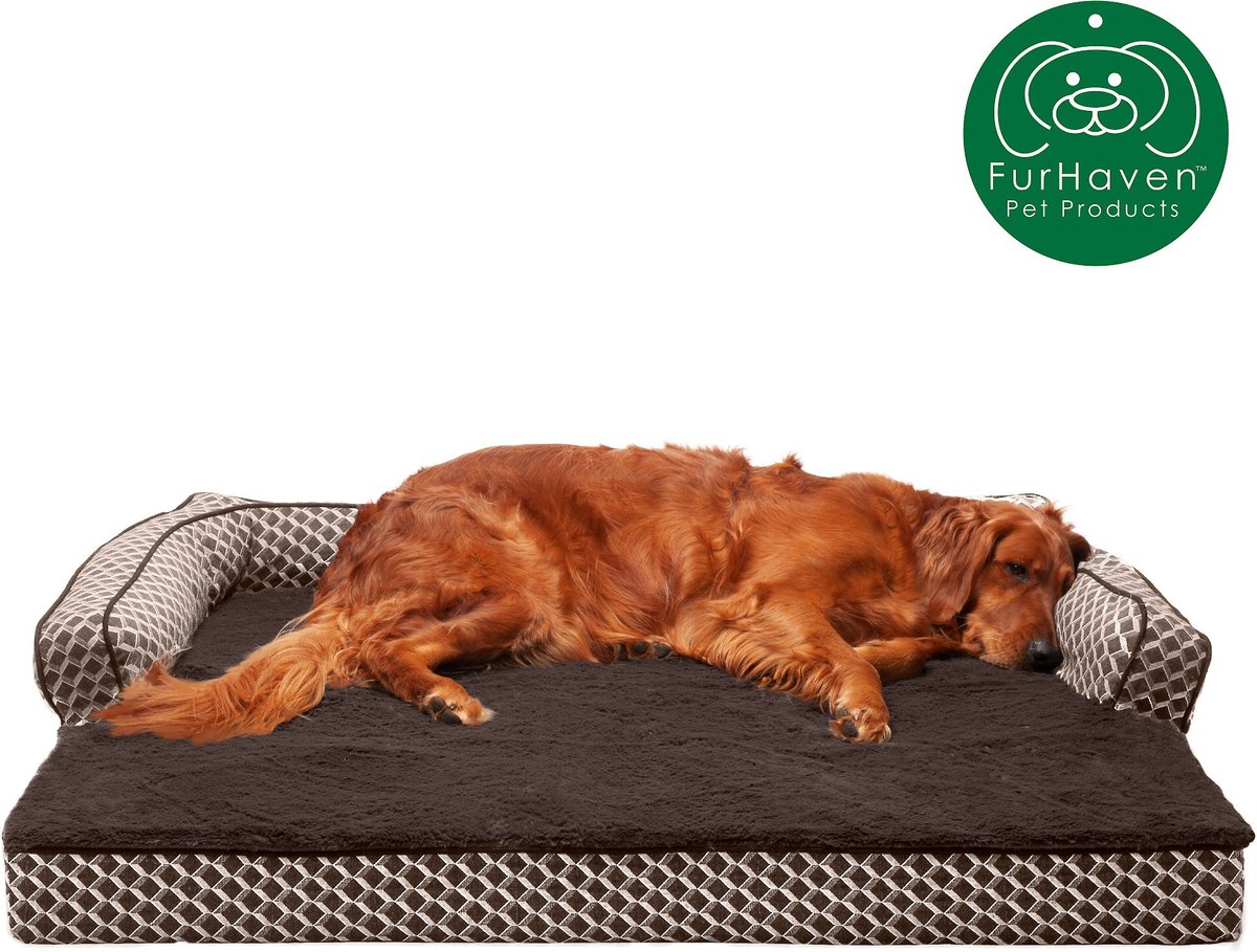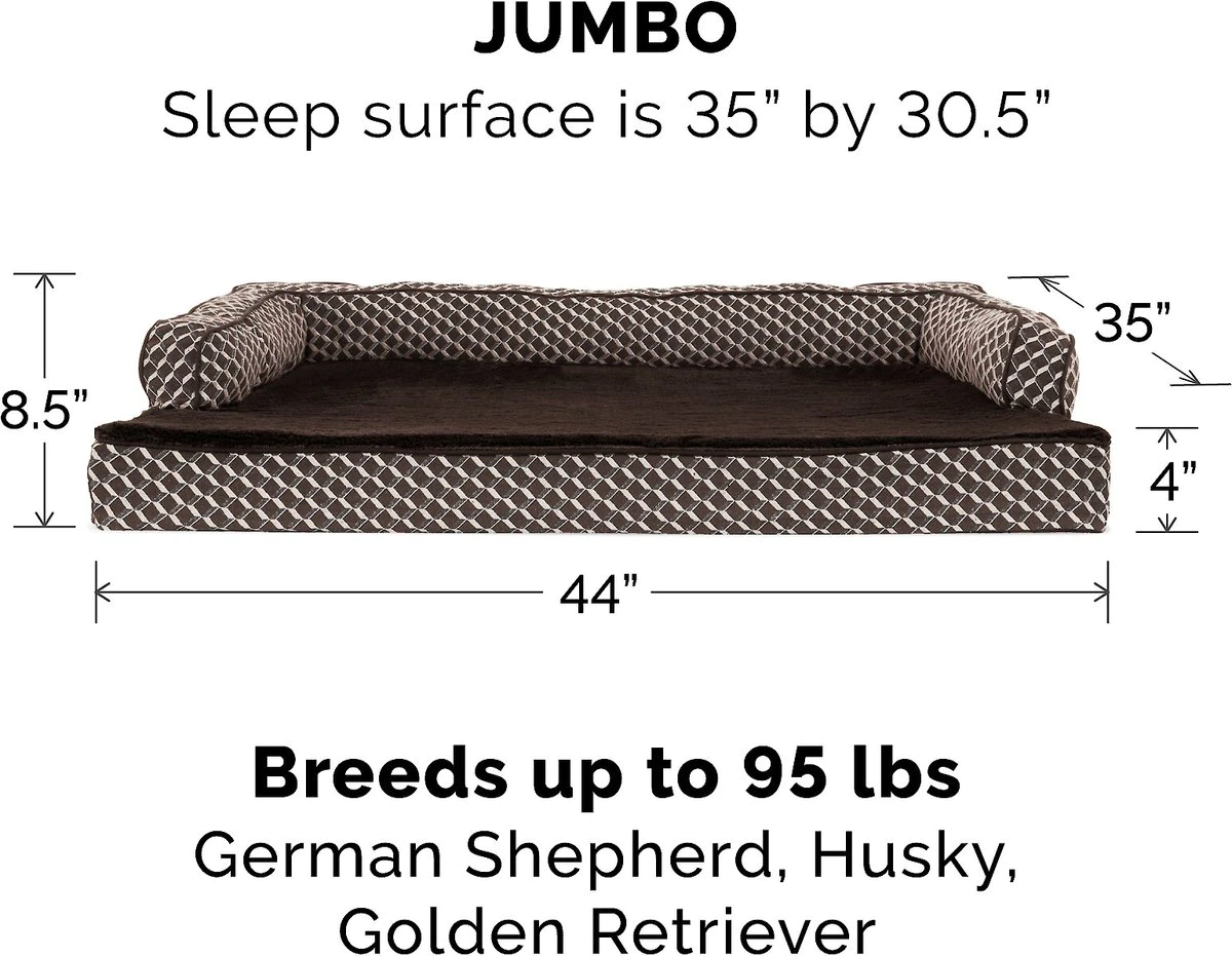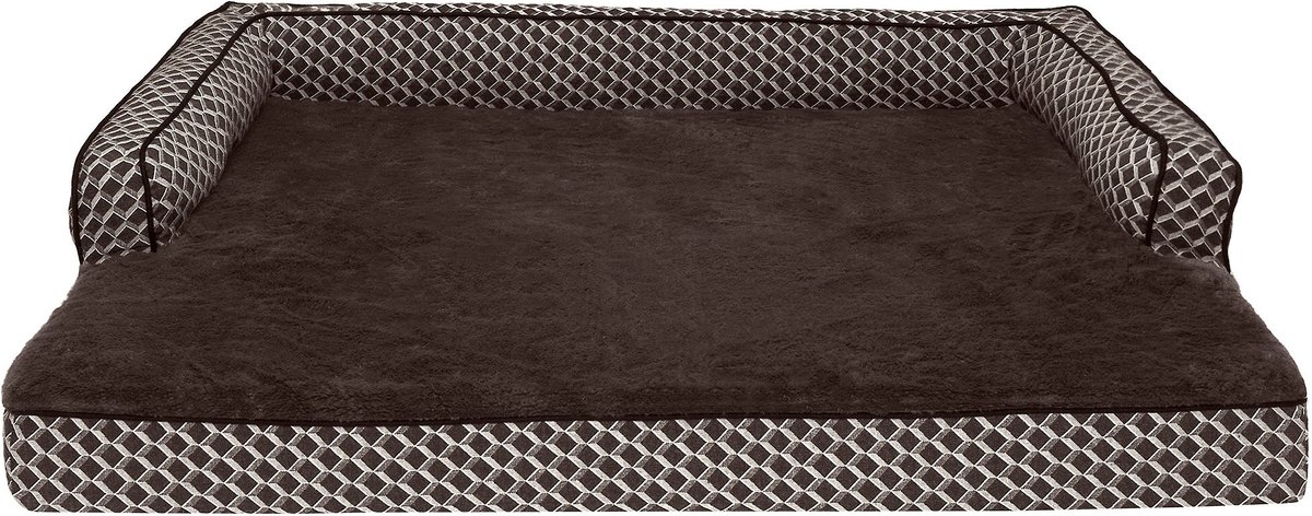 FurHaven Comfy Couch Orthopedic Bolster Dog Bed w/Removable Cover - Diamond Brown. Jumbo