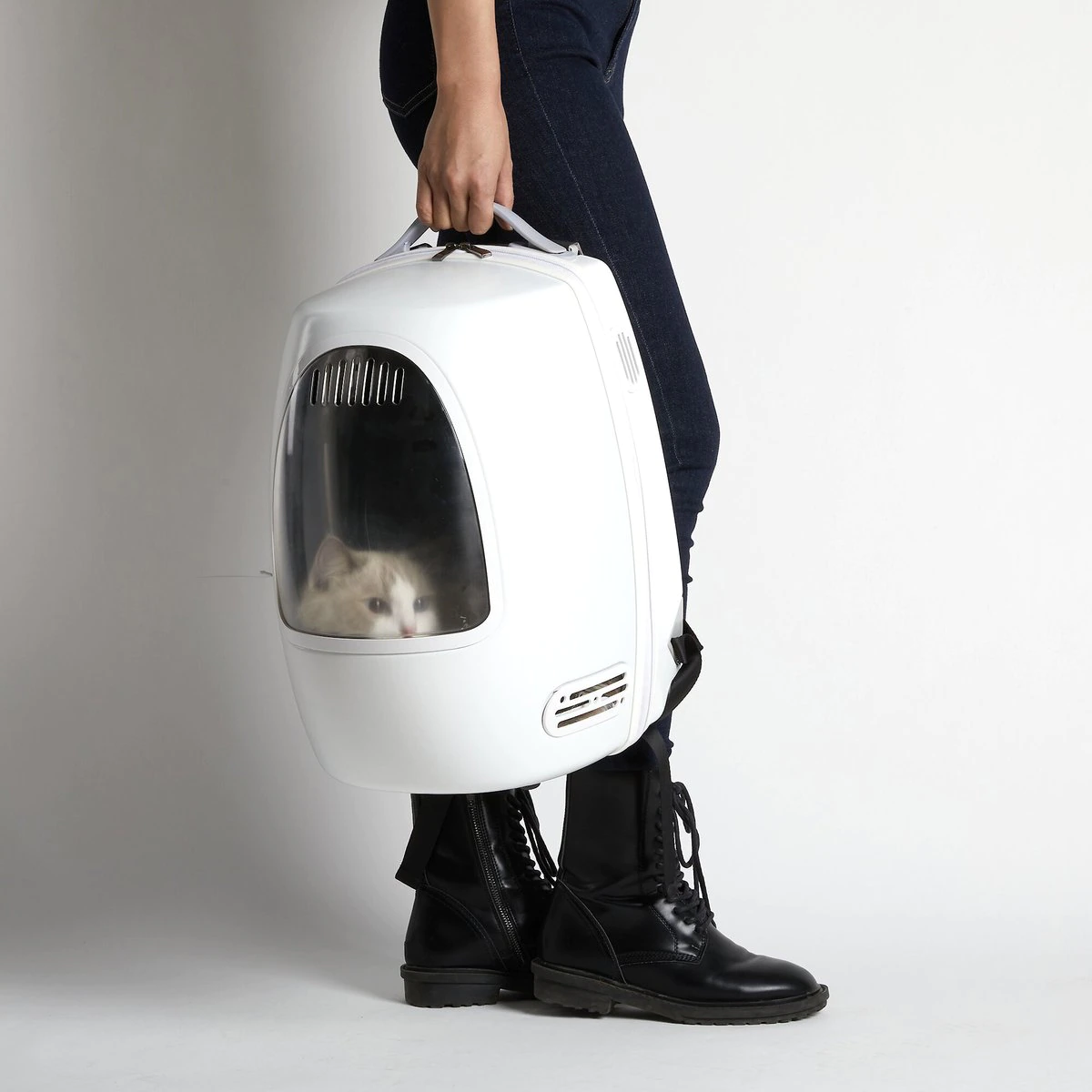 INSTACHEW Petpod Backpack Pet Carrier with Built in Fan for Cats and Dogs. White