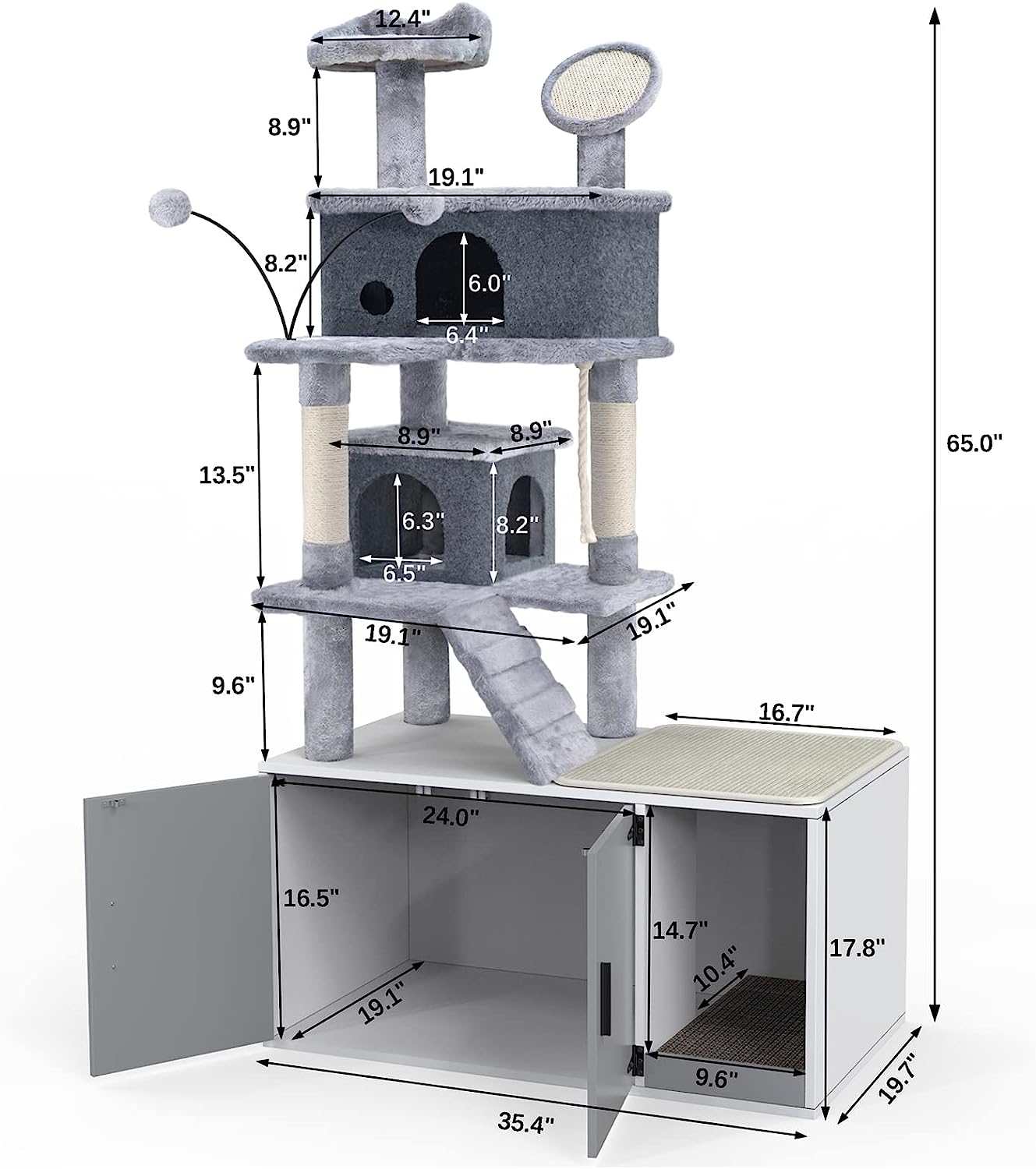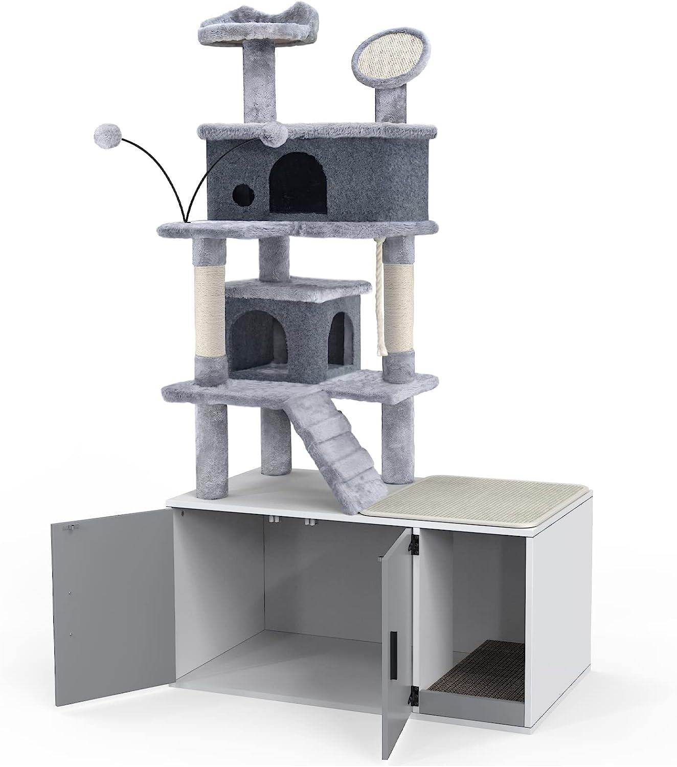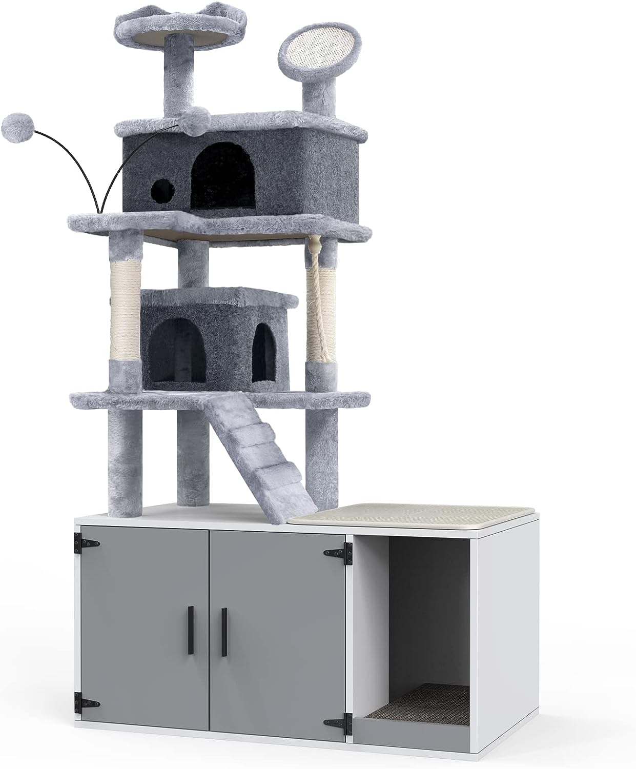 GDLF Cat Litter Box Enclosure Hidden Cat Washroom with Cat Tower All-in-One Large Cat Tree Cat Condo with Sisal Scratching Post & Pad 65