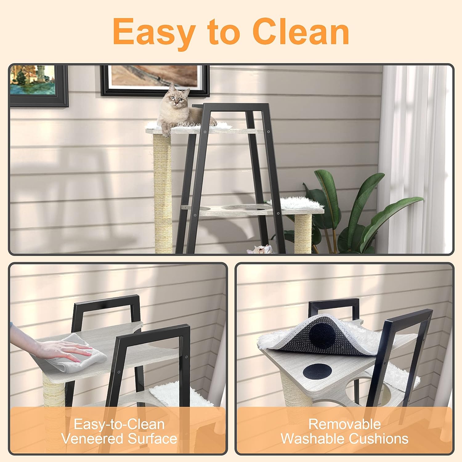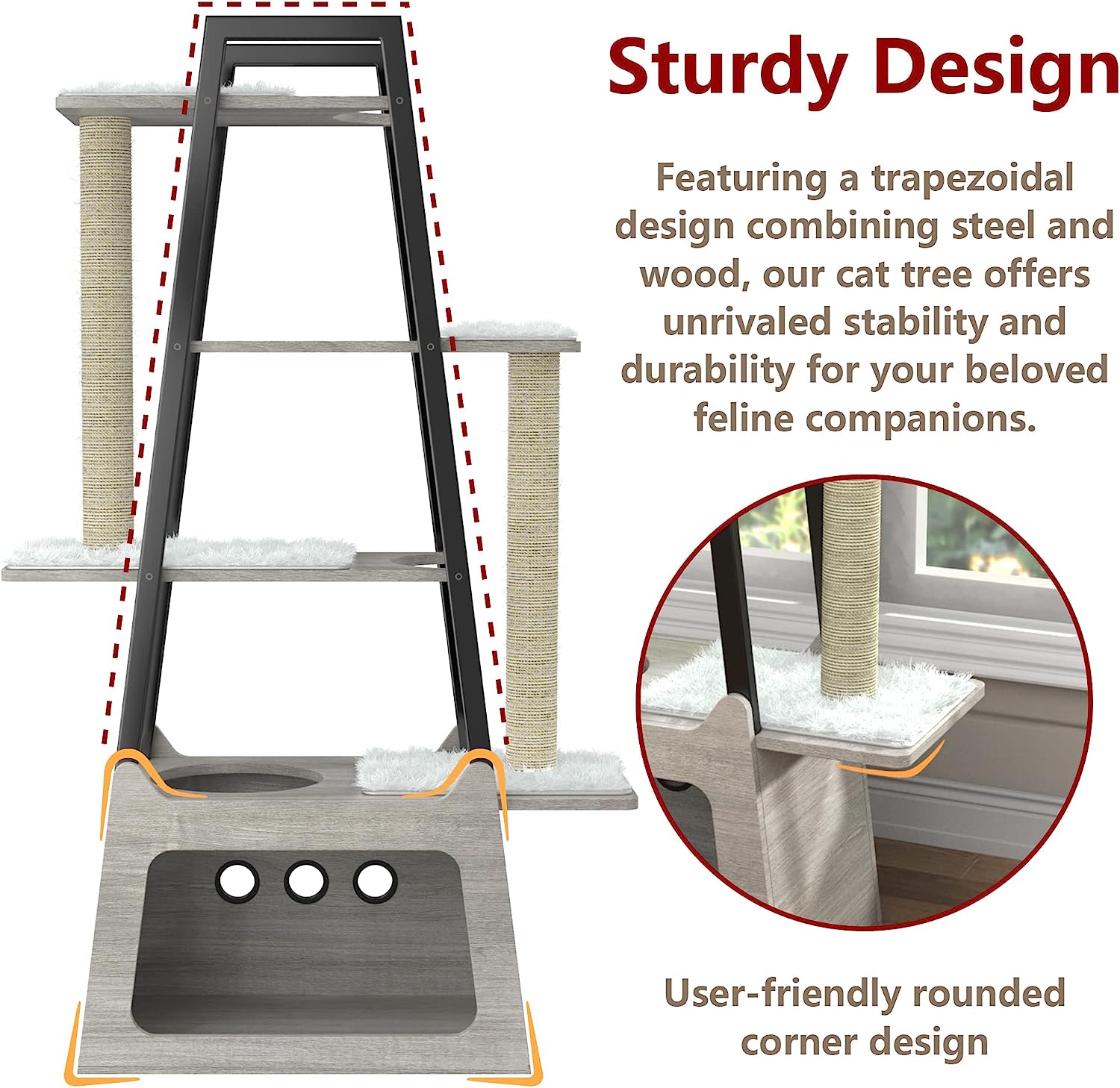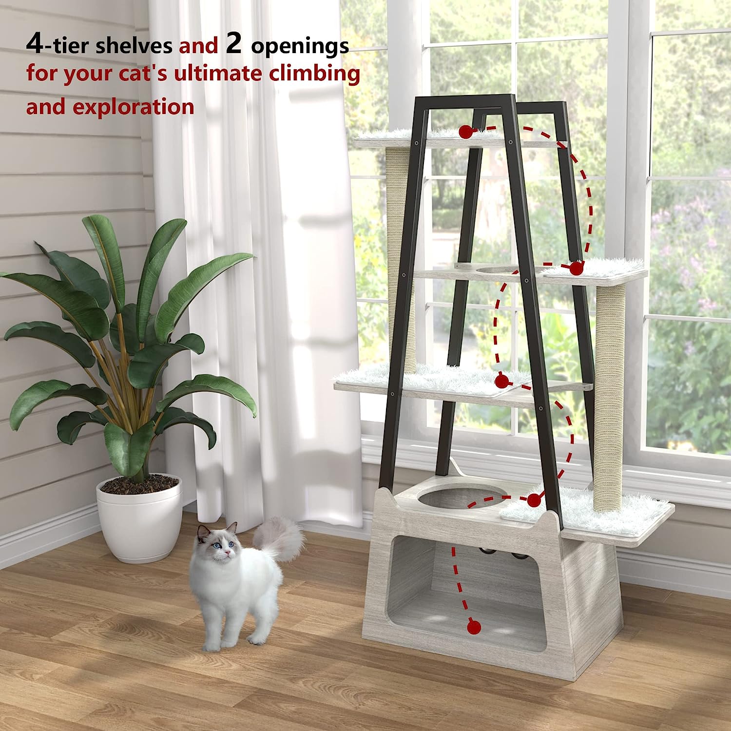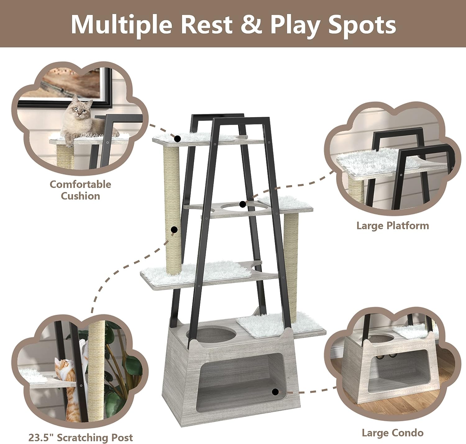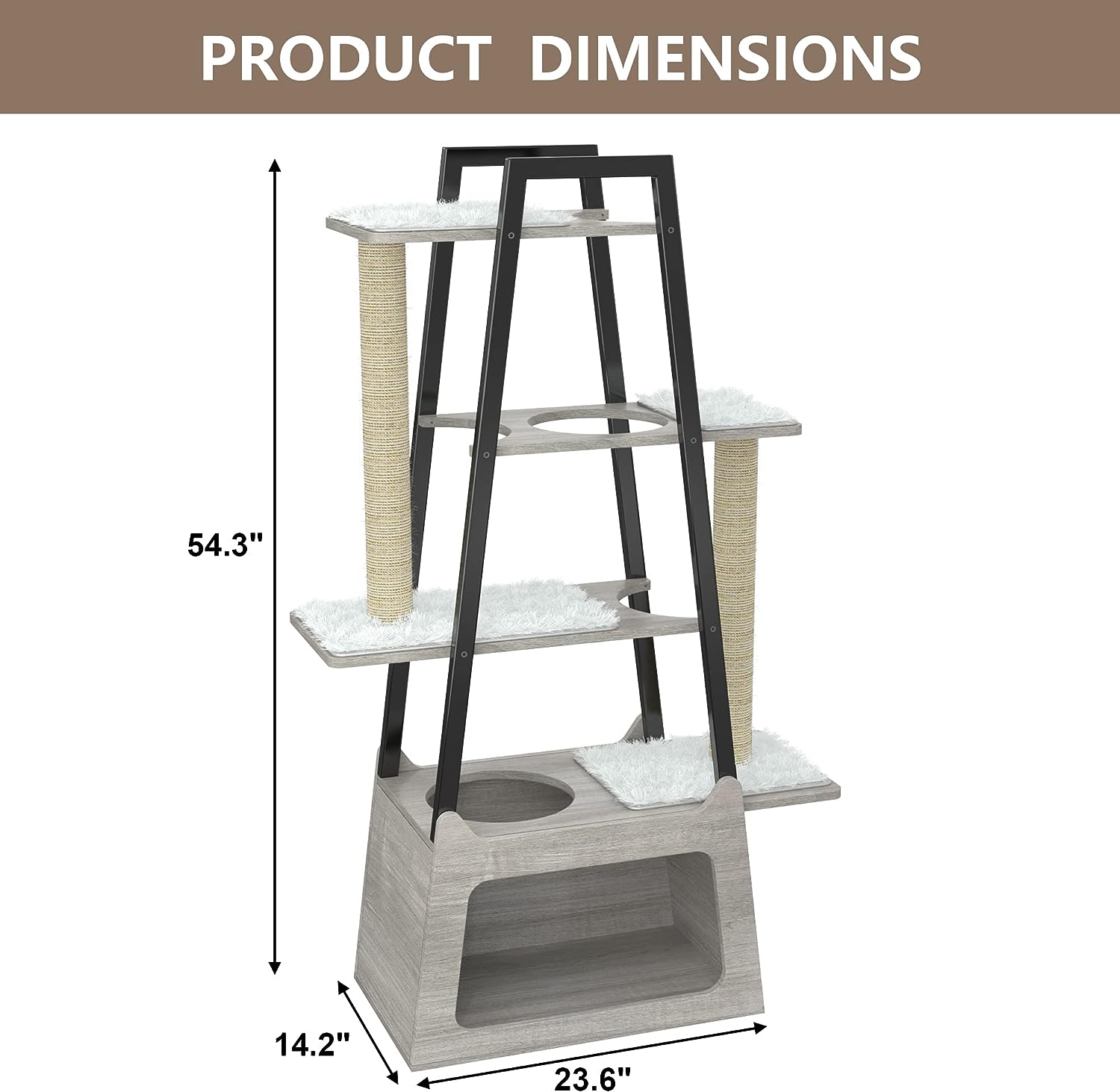 GDLF Modern Cat Tree Wooden Heavy Duty Cat Tower for Indoor Cats with Condo and Long Scratching Posts for Large Felines Easy Clean 54″