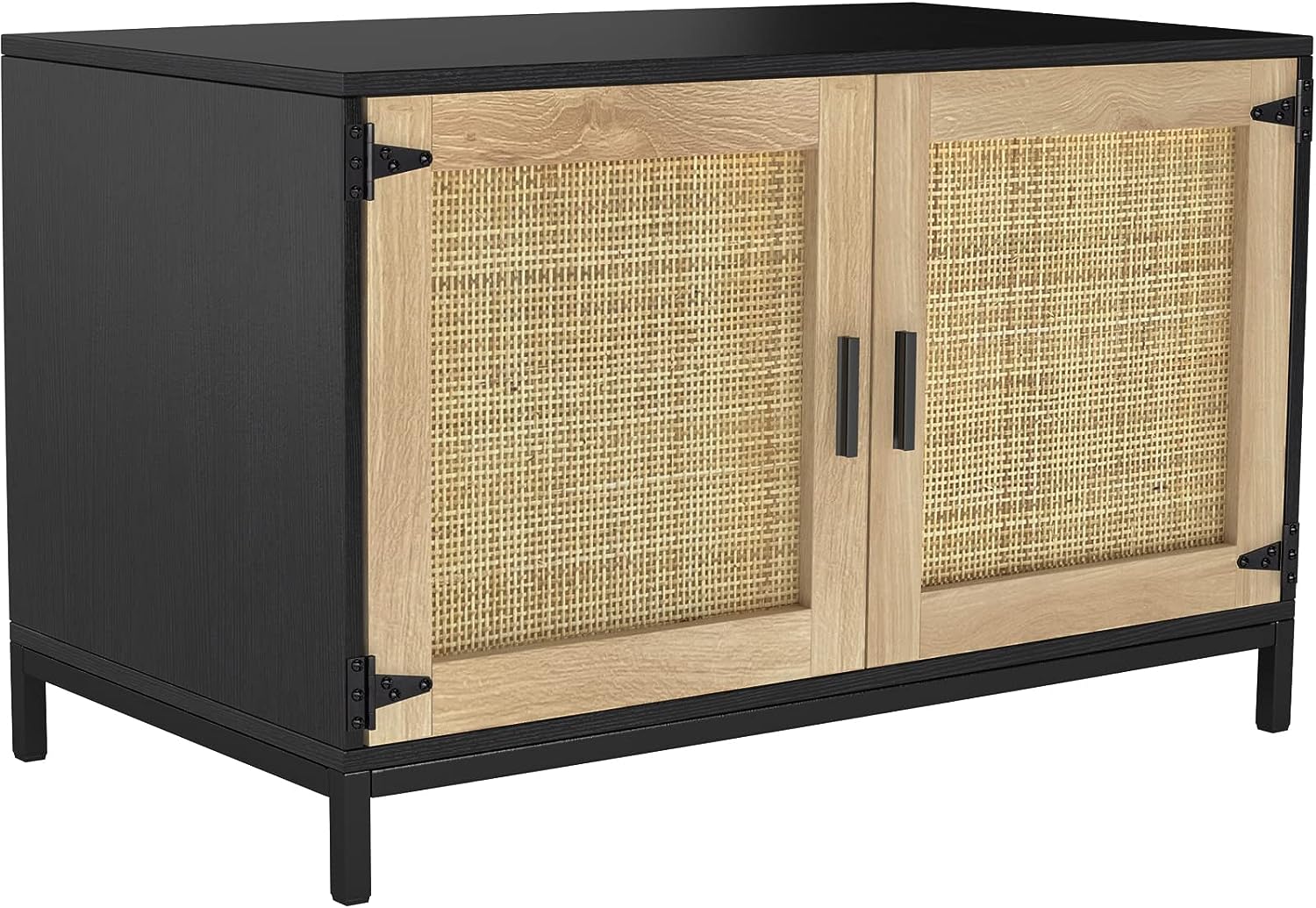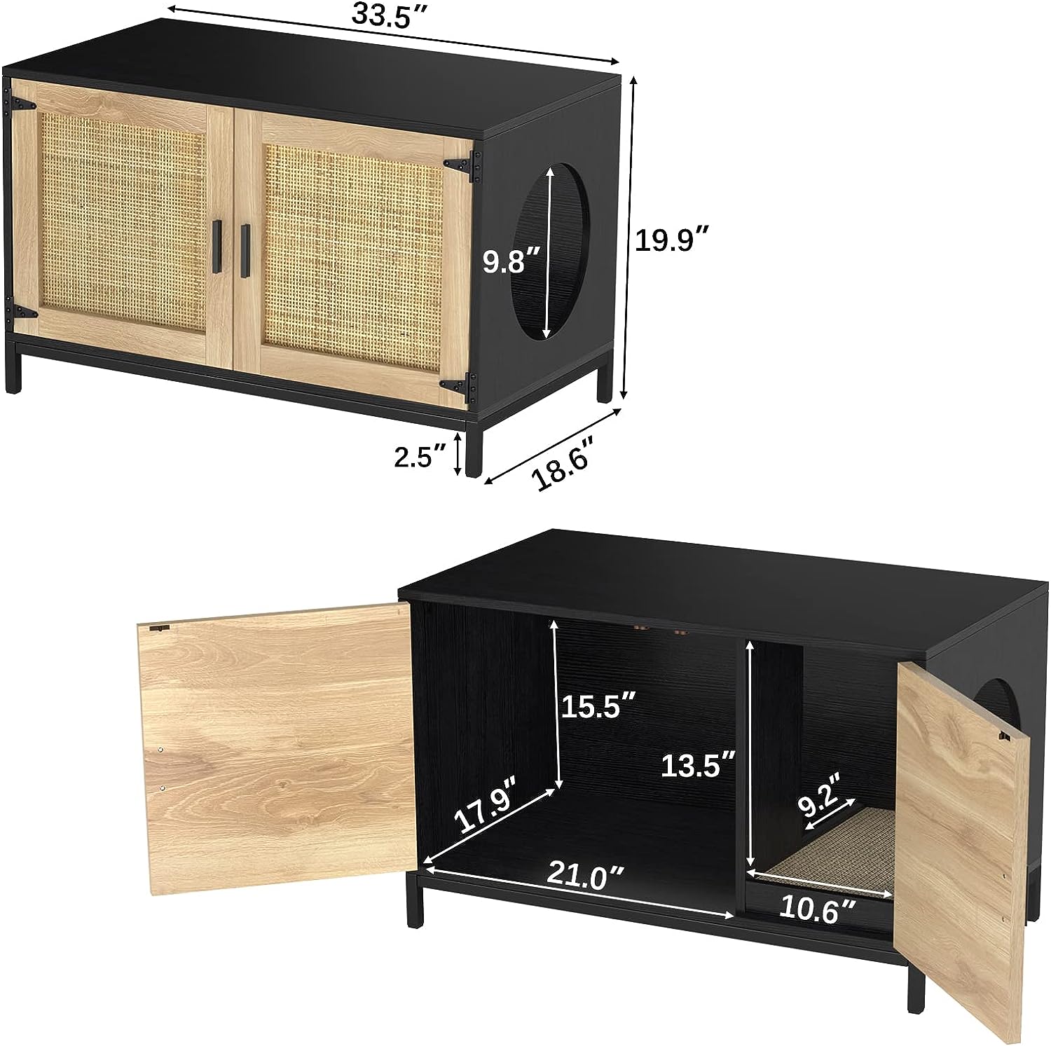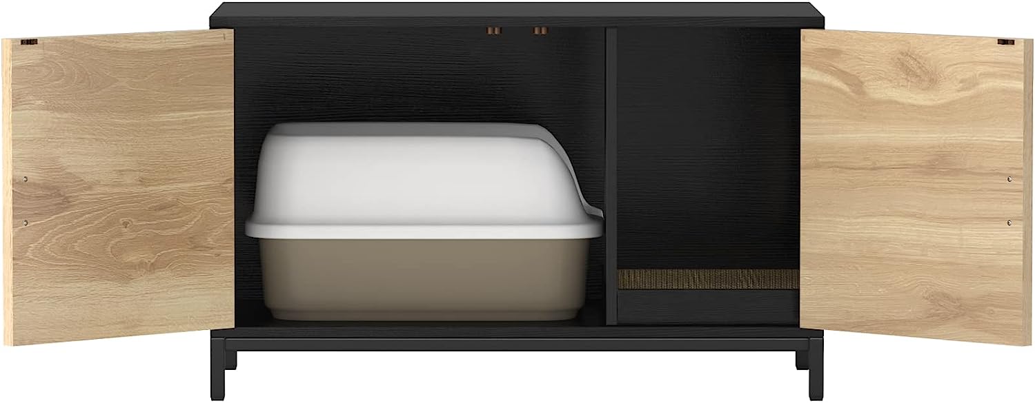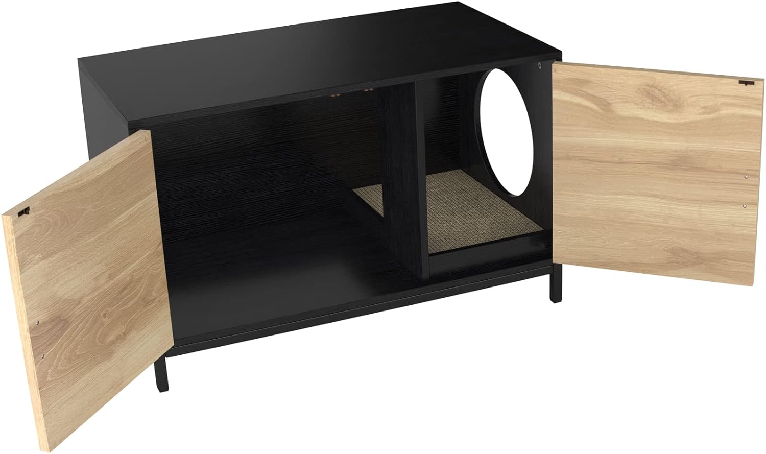 GDLF Cat Litter Box Furniture Hidden with Natural Rattan Doors Litter Box Enclosure with Cat Litter Mat/Scratch Pad and Metal Legs