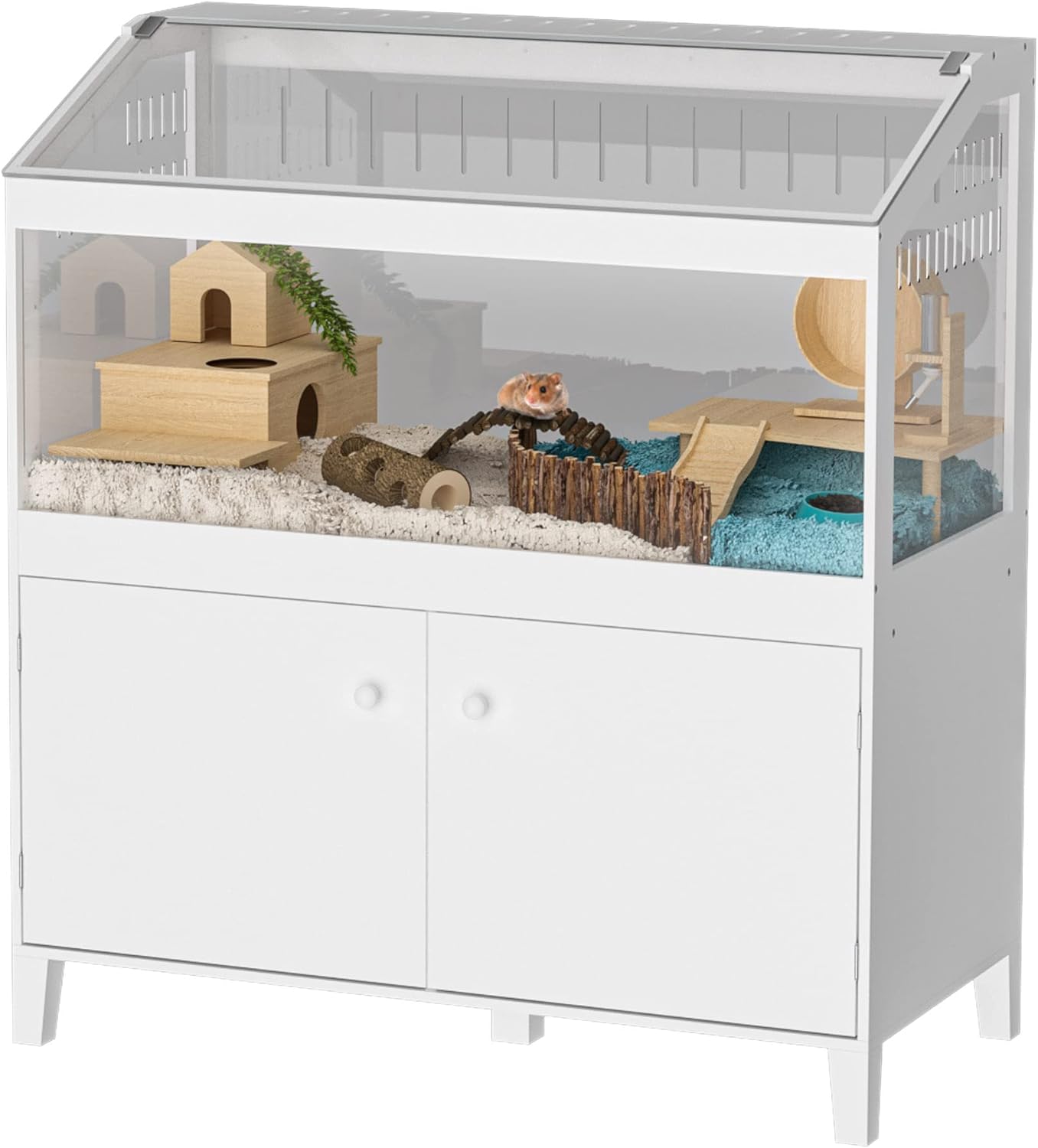 GDLF Hamster Cage with Storage Cabinet Small Animal Cage. Easy View Acrylic Panels. Large Habitat for Hedgehog Gerbil & Rat 39.5″x19.7″x43.7″