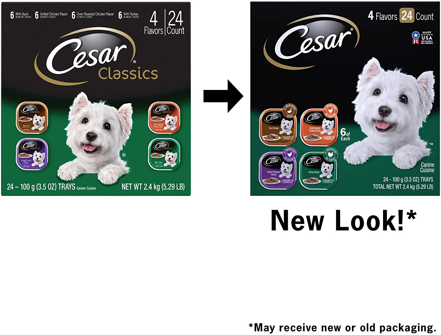 CESAR Soft Wet Dog Food Classic Loaf in Sauce Poultry Variety Pack. (24) 3.5 oz. Easy Peel Trays with Real Chicken. Turkey or Duck