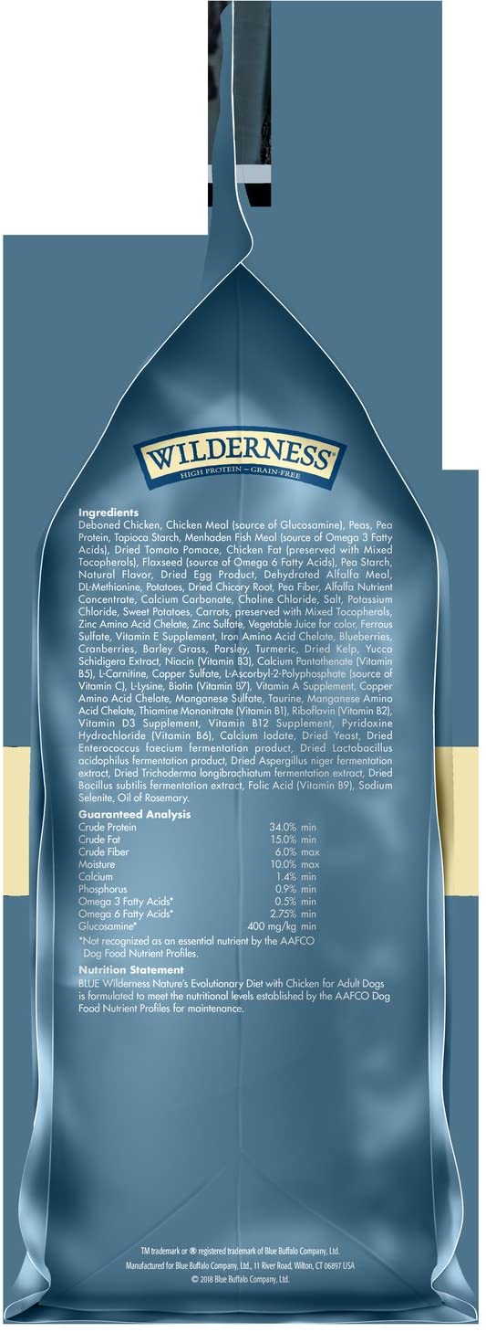 Blue Buffalo Wilderness High Protein. Natural Adult Dry Dog Food. Chicken 24-lb