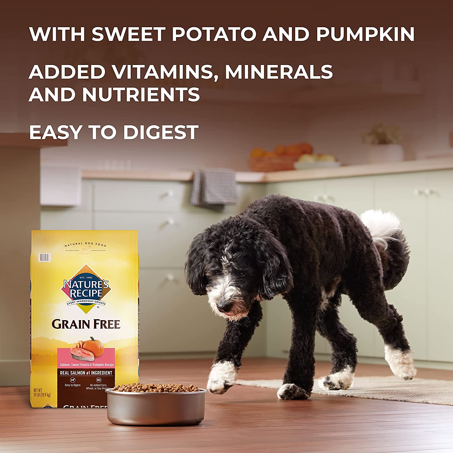 Nature-s Recipe Grain Free Dry Dog Food. Salmon. Sweet Potato & Pumpkin Recipe. 12 Pound Bag. Easy to Digest