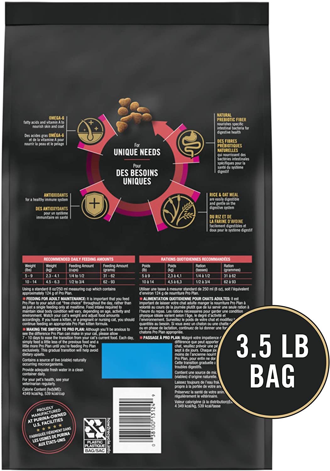 Purina Pro Plan Sensitive Skin and Stomach Cat Food. Lamb and Rice Formula - 3.5 lb. Bag