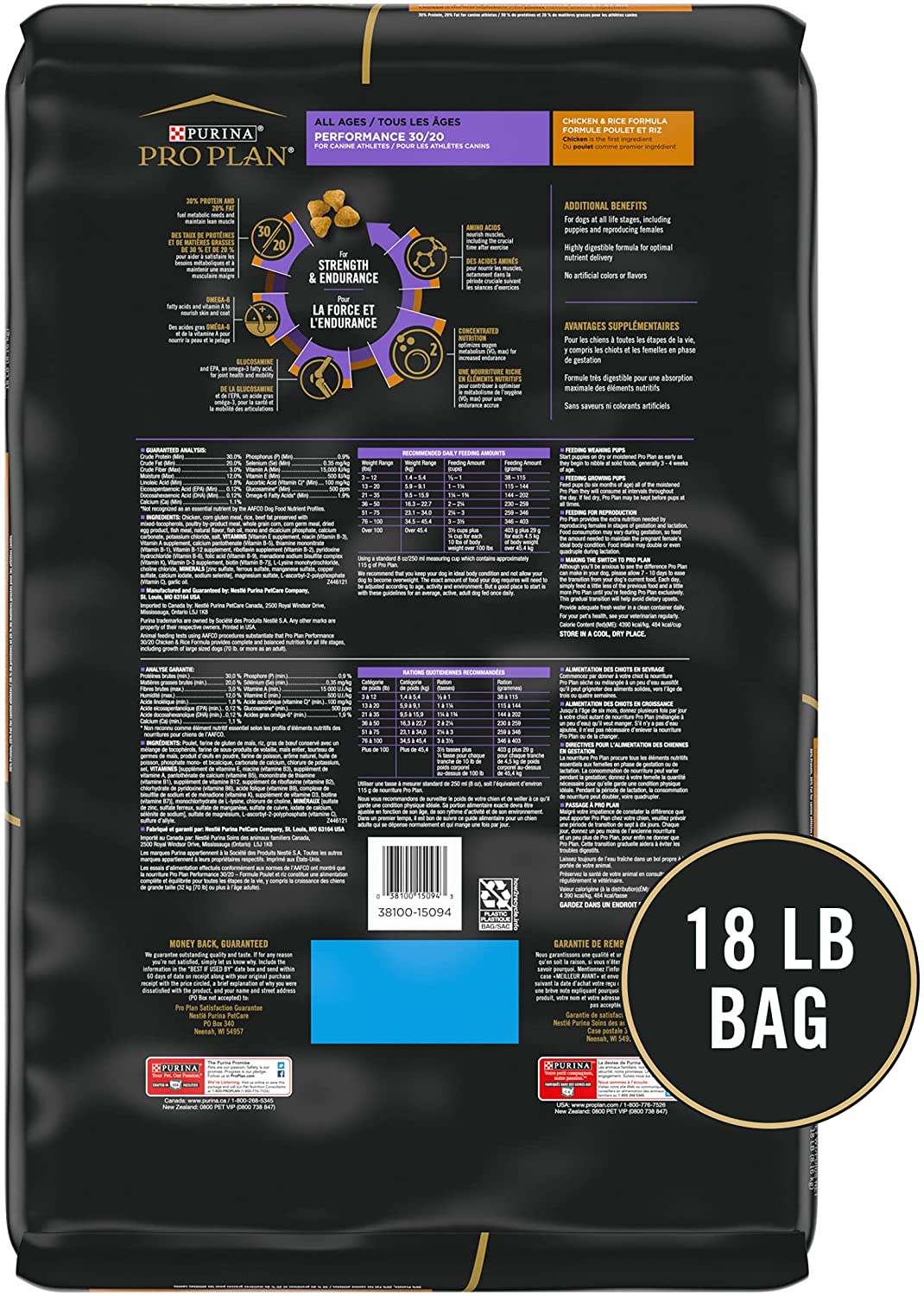 Purina Pro Plan High Calorie. High Protein Dry Dog Food. 30/20 Chicken & Rice Formula - 18 lb. Bag