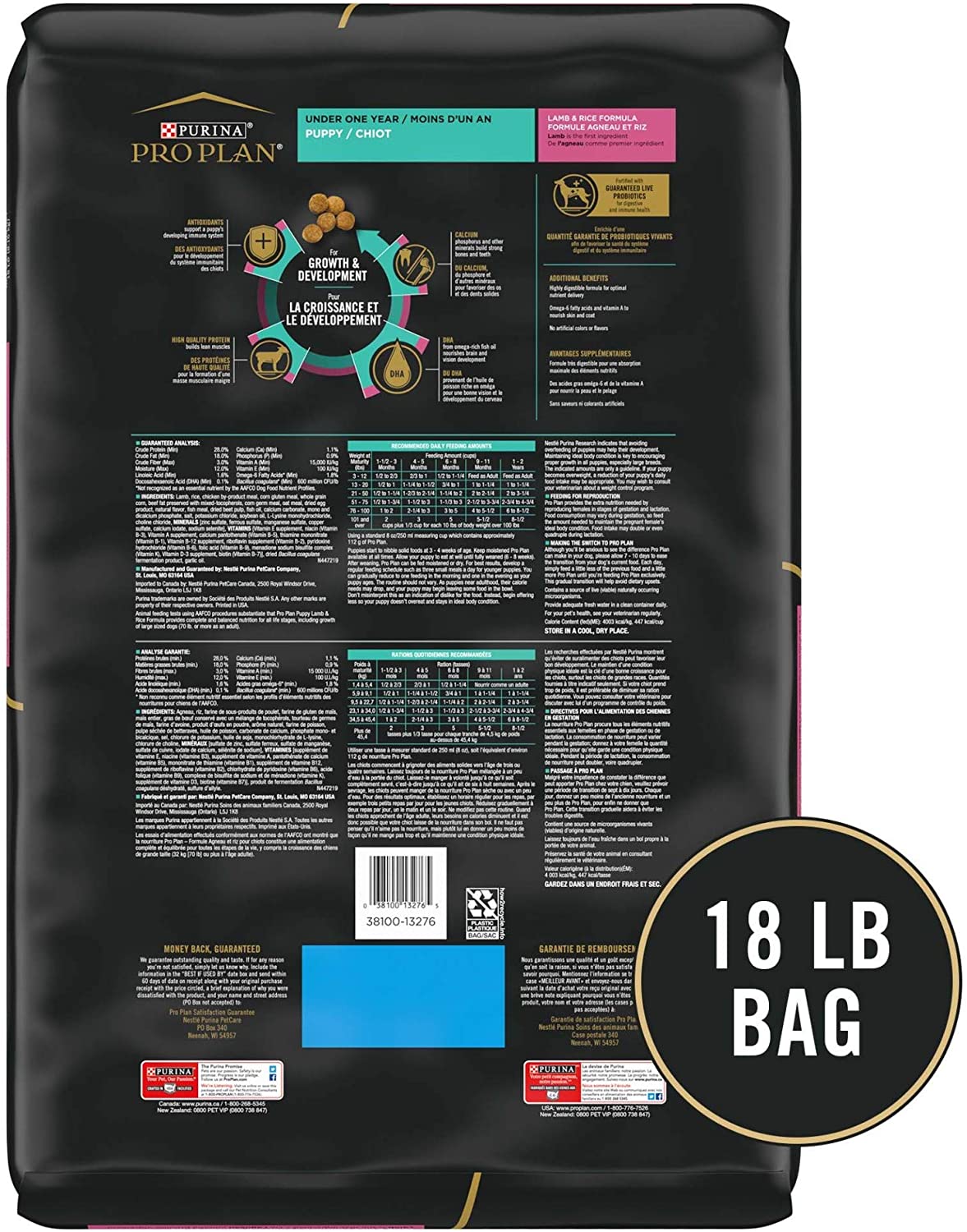 Purina Pro Plan High Protein Puppy Food DHA Lamb & Rice Formula - 18 lb. Bag