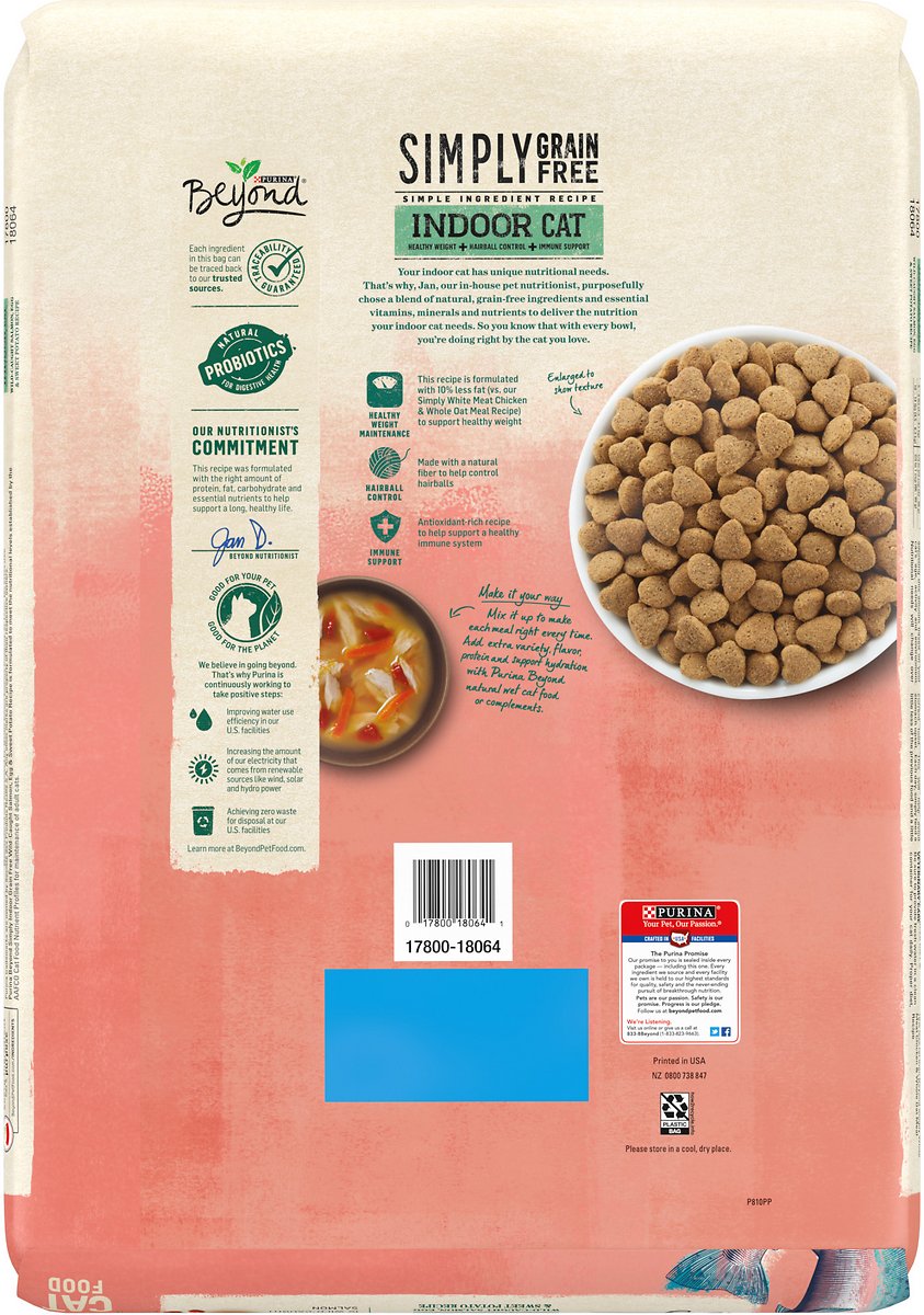 Purina Beyond Simply Indoor Wild-Caught Salmon. Egg & Sweet Potato Recipe Grain-Free Dry Cat Food. 11lb Bag