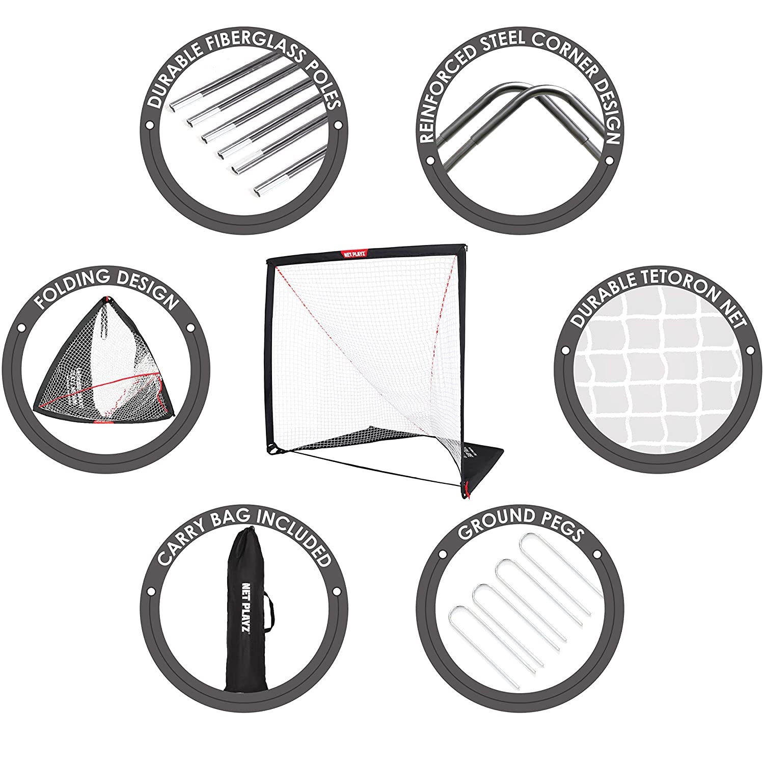 NET PLAYZ 6 x 6 x 6 Feet Lacrosse Goal Fast Install. Fiberglass Frme. Lightweight. Foldable. Portable. Carry Bag Included. Black
