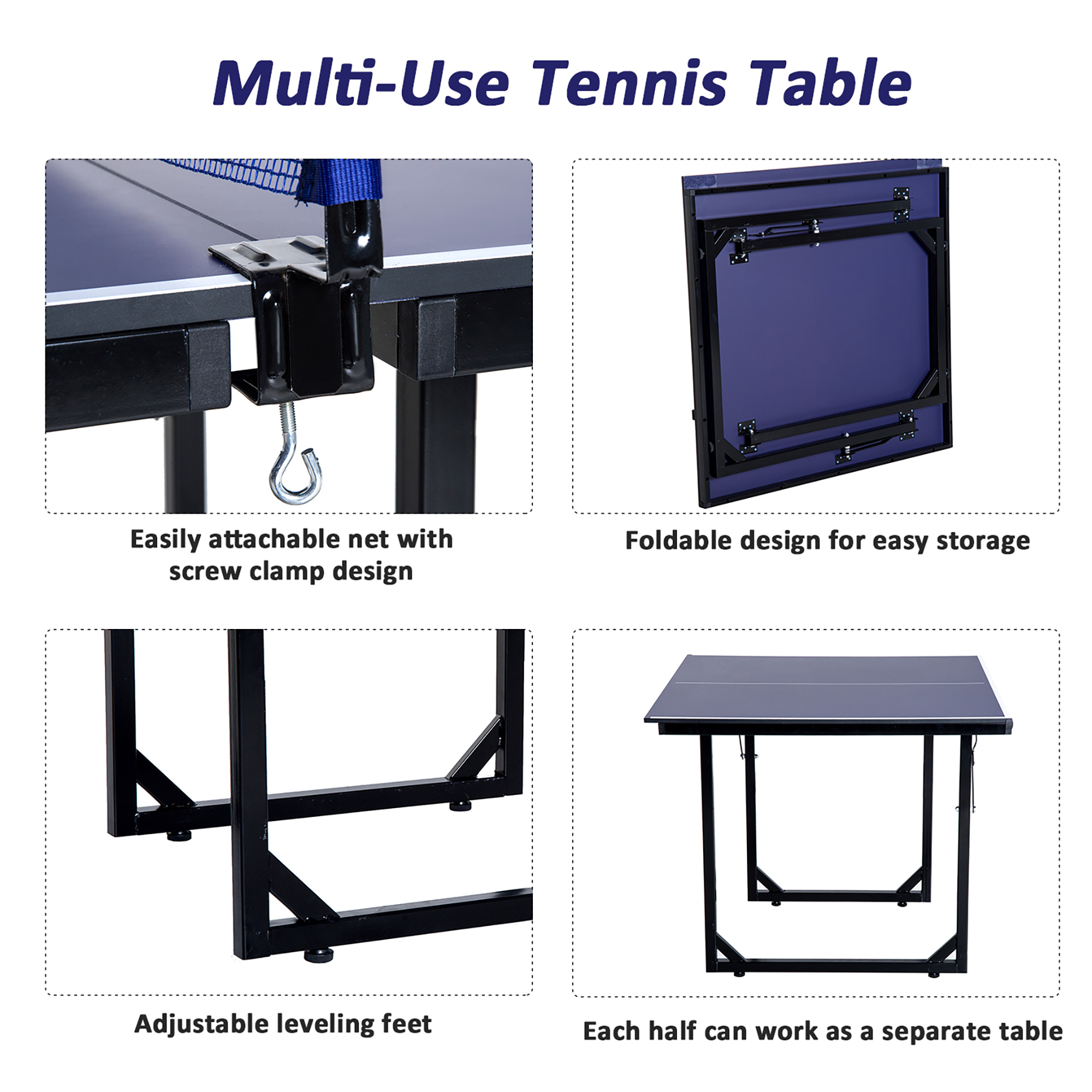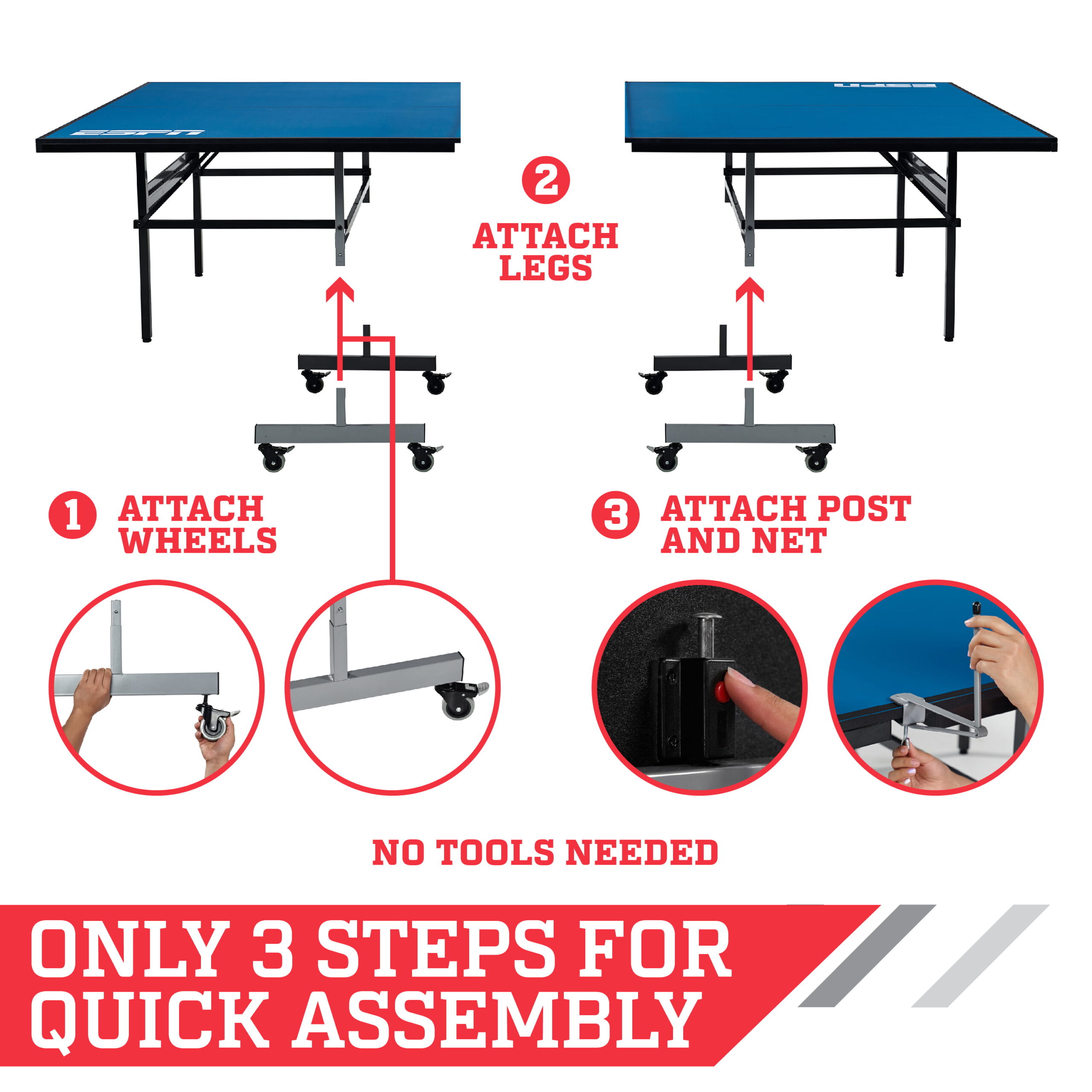 ESPN Official Size 2 Piece 15mm Indoor Quick Match Table Tennis Table. Blue