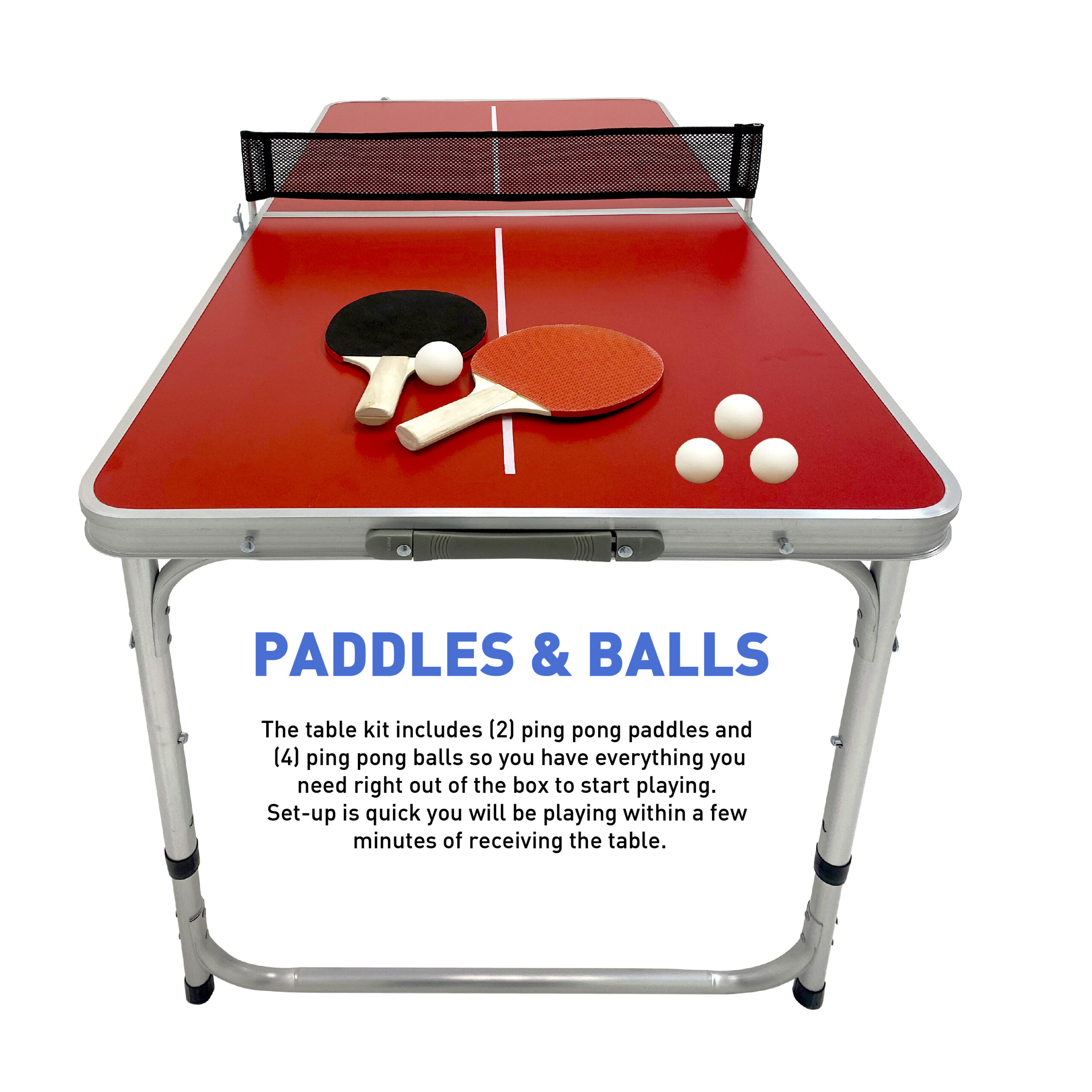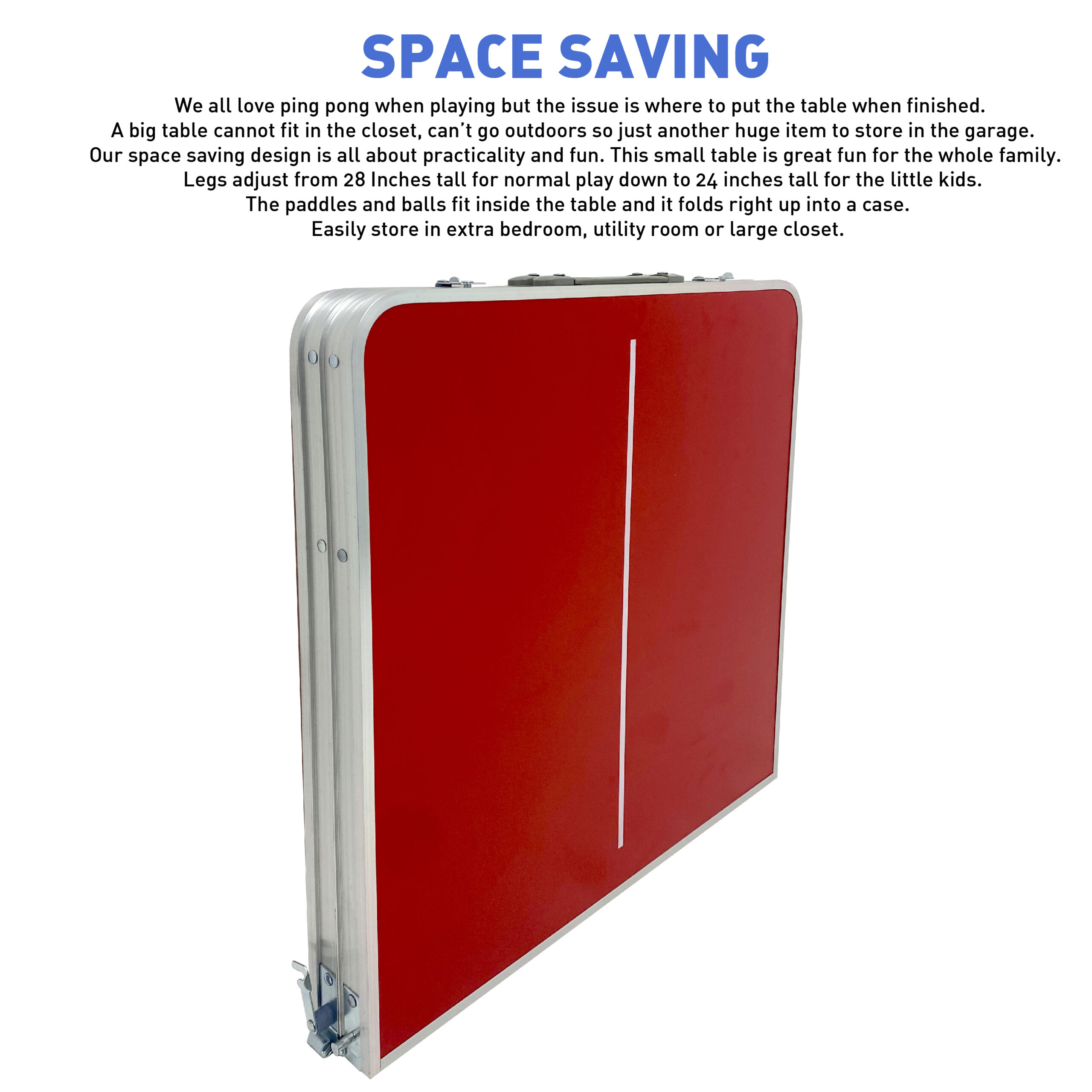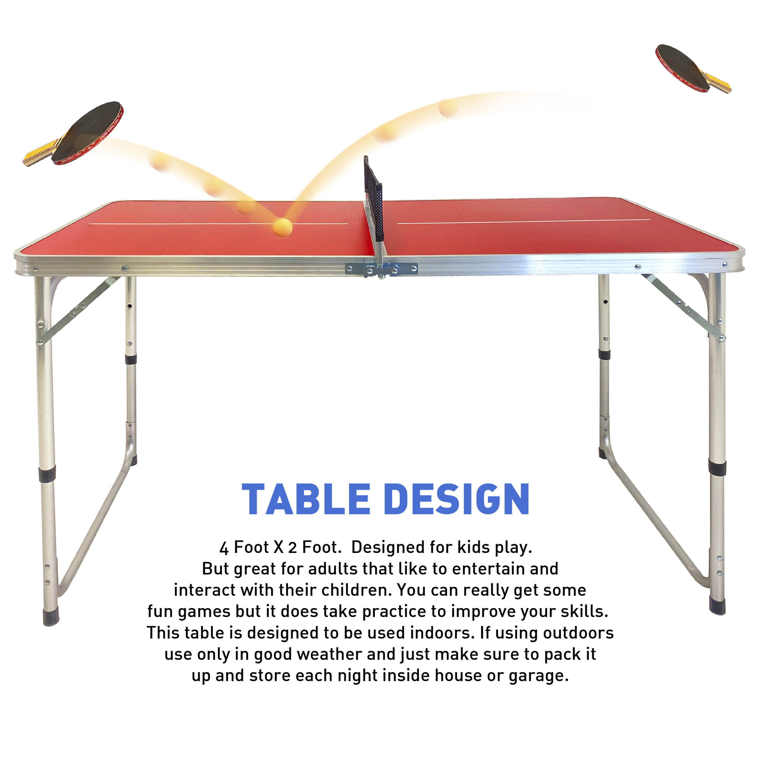 Mini Kids Ping Pong Table Tennis – Space Saving & Easy Storage – Includes (2) Regulation Paddles (4) Balls and (1) Net – Table Size 4 Foot X 2 Foot – Legs 24-28 Tall - RED