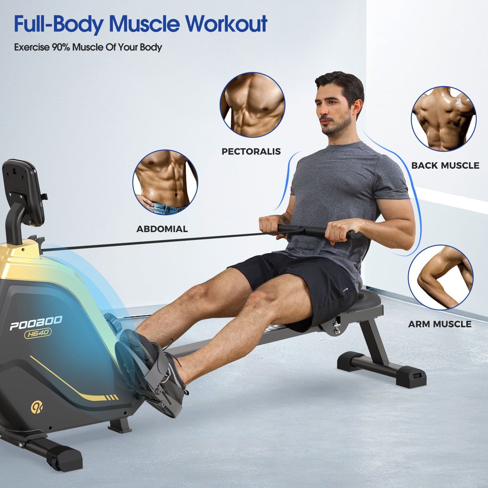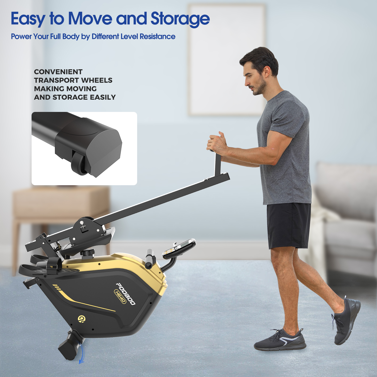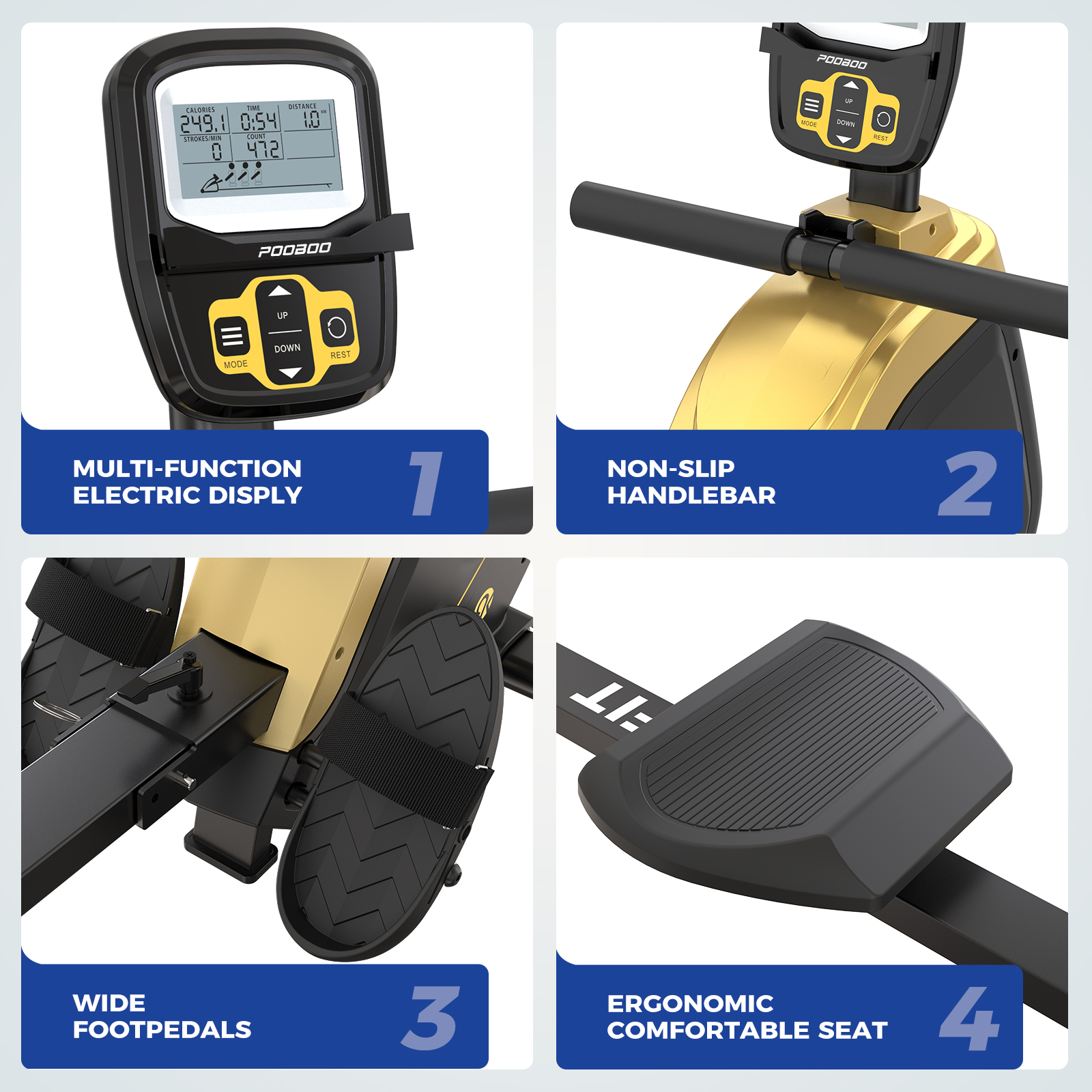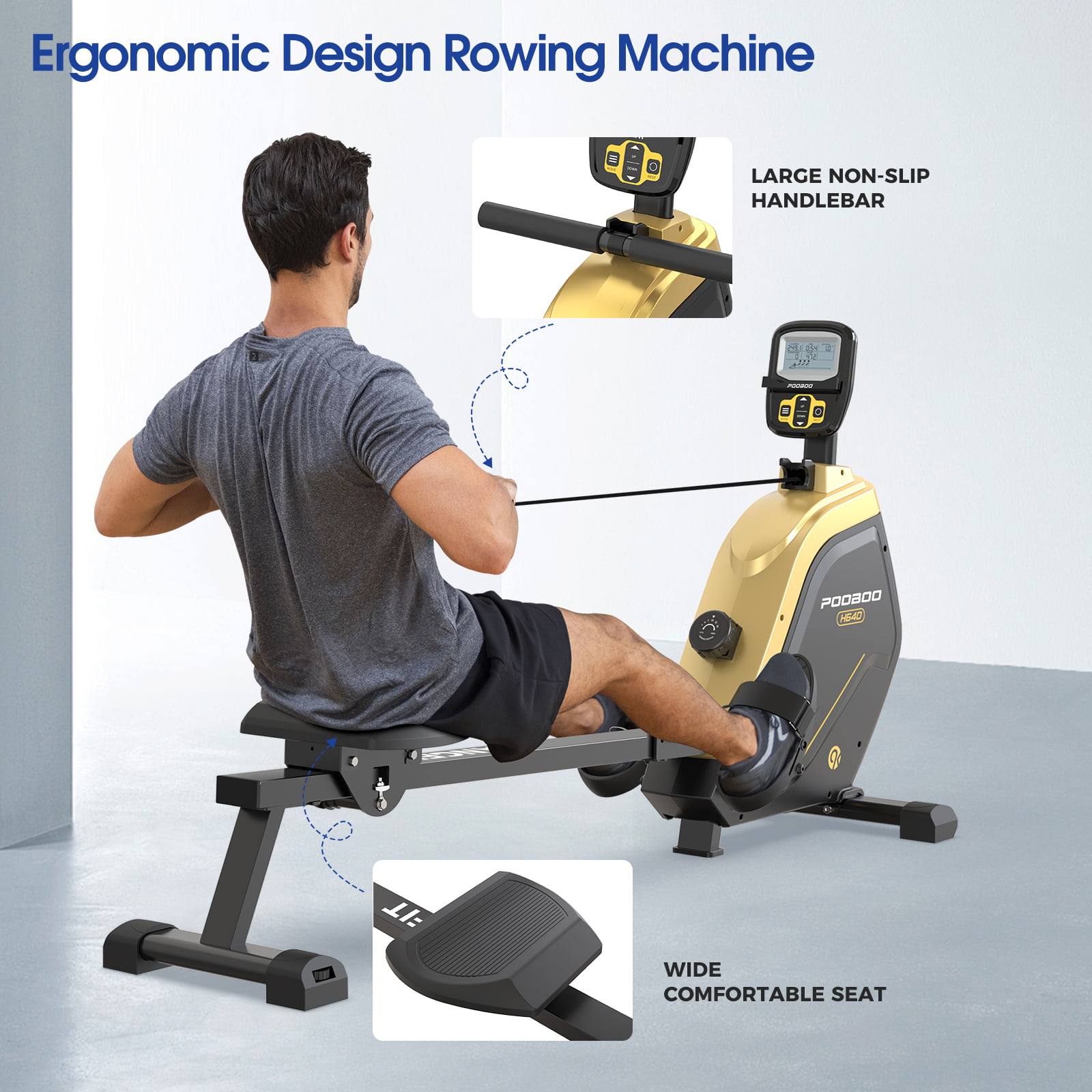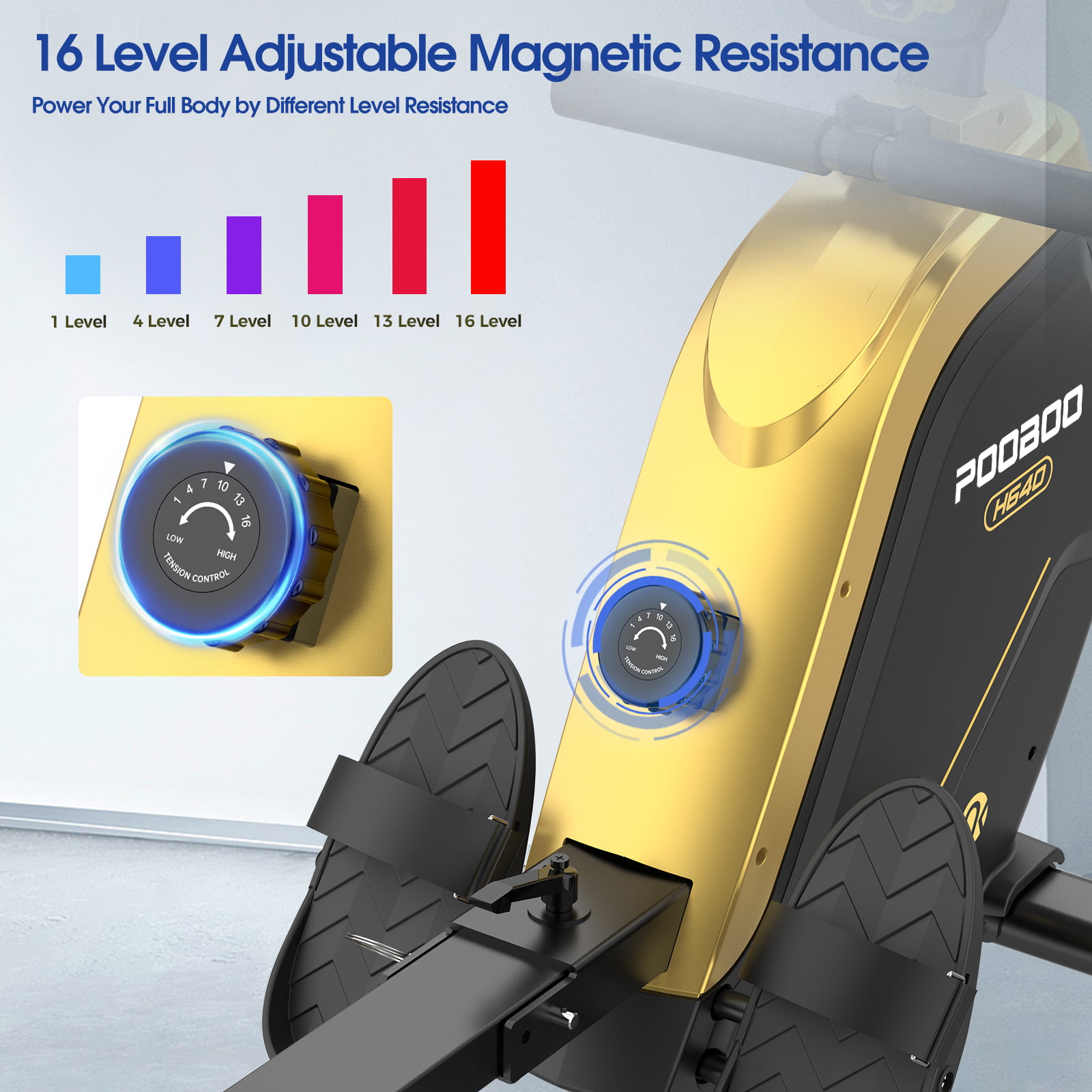 Pooboo Row Machine Magnetic Rowing Machine Indoor Foldable Rower with 16 Level Adjustable Quiet Magnetic Resistance. Ergonomic Seat & LCD Monitor Cardio Exercise Training Max Weight 350 lbs