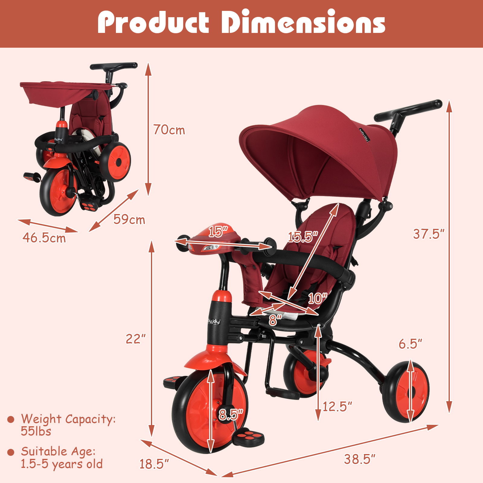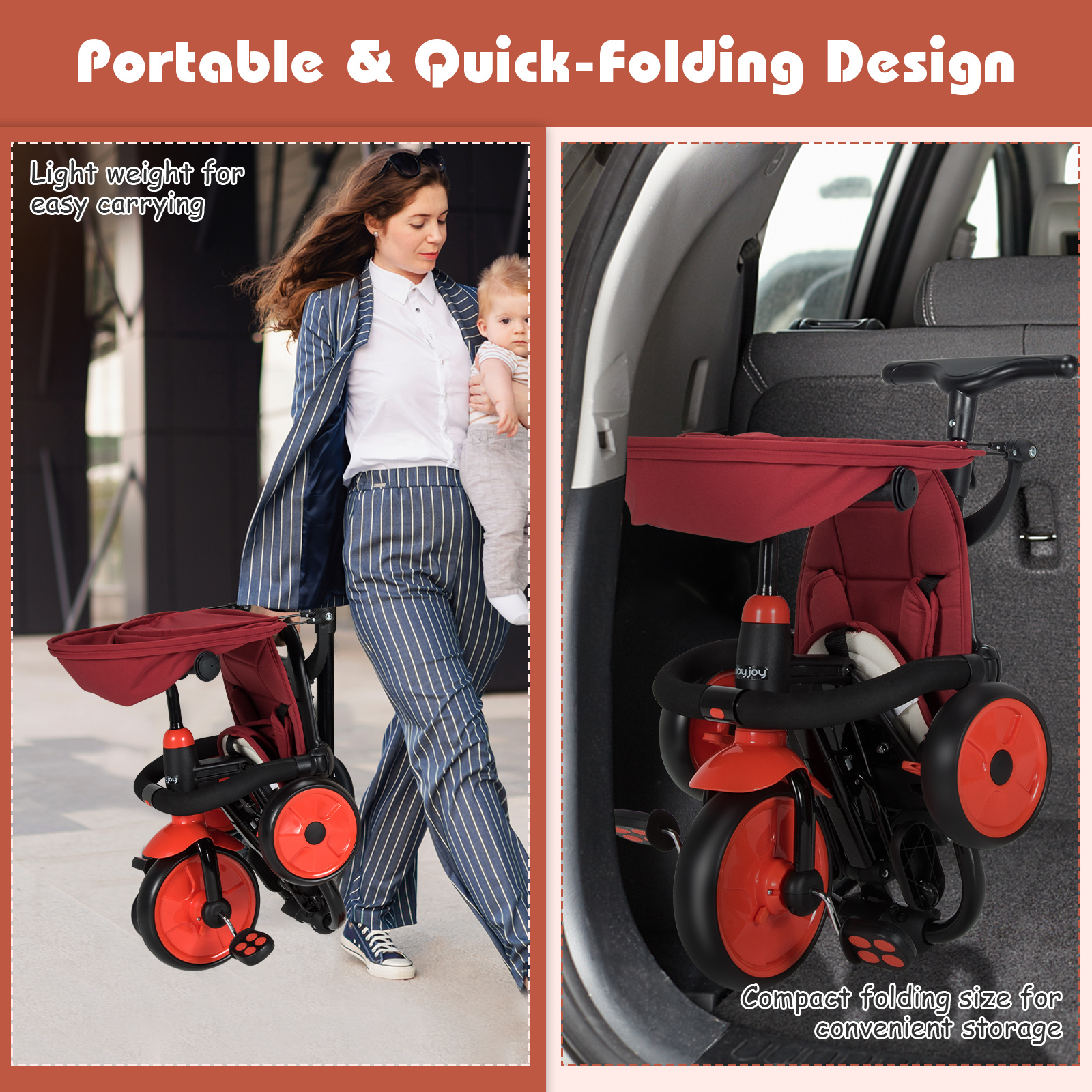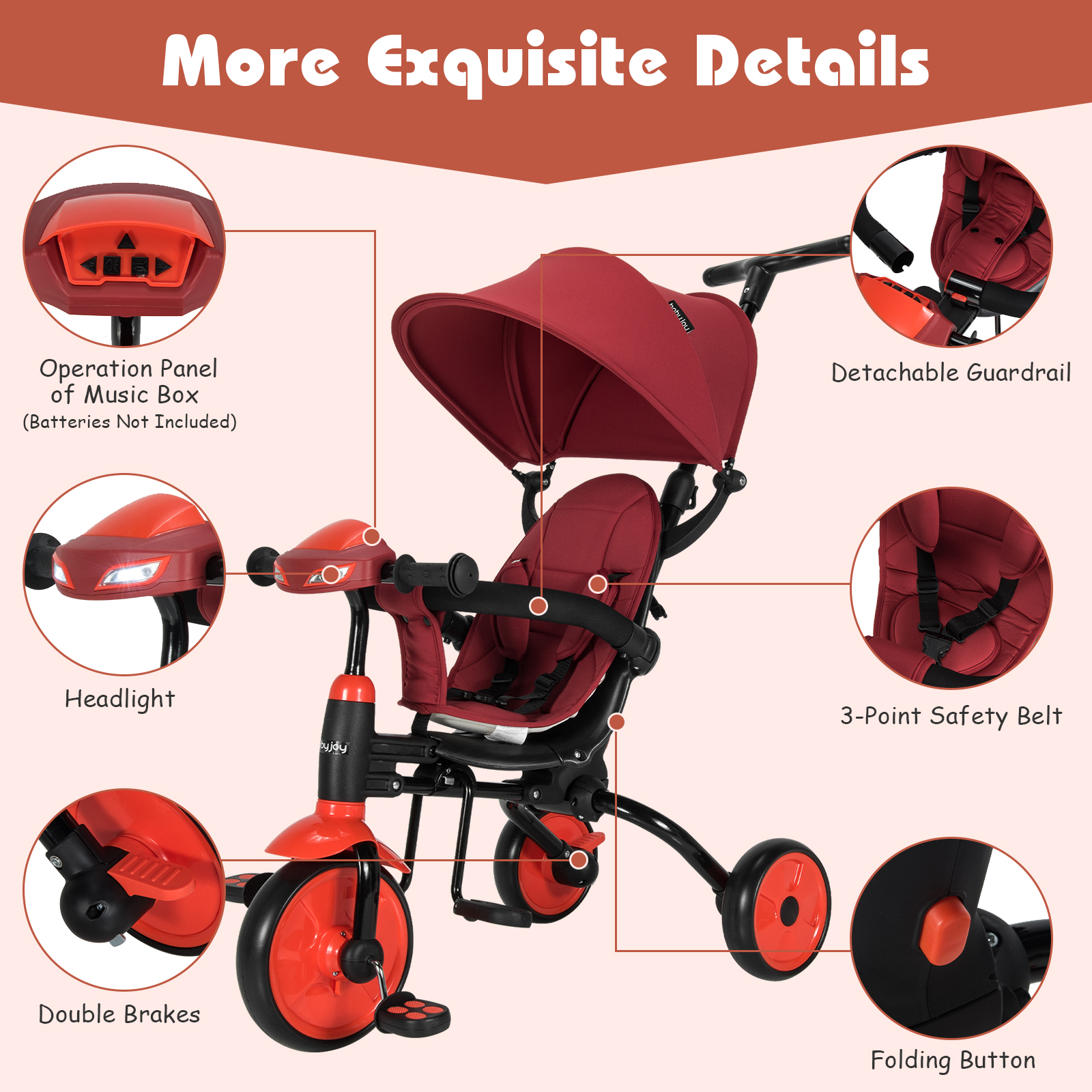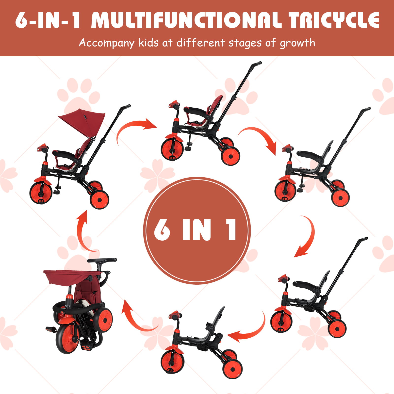 Infans 6-in-1 Foldable Baby Tricycle Toddler Bike Stroller W/Adjustable Push Handle Red
