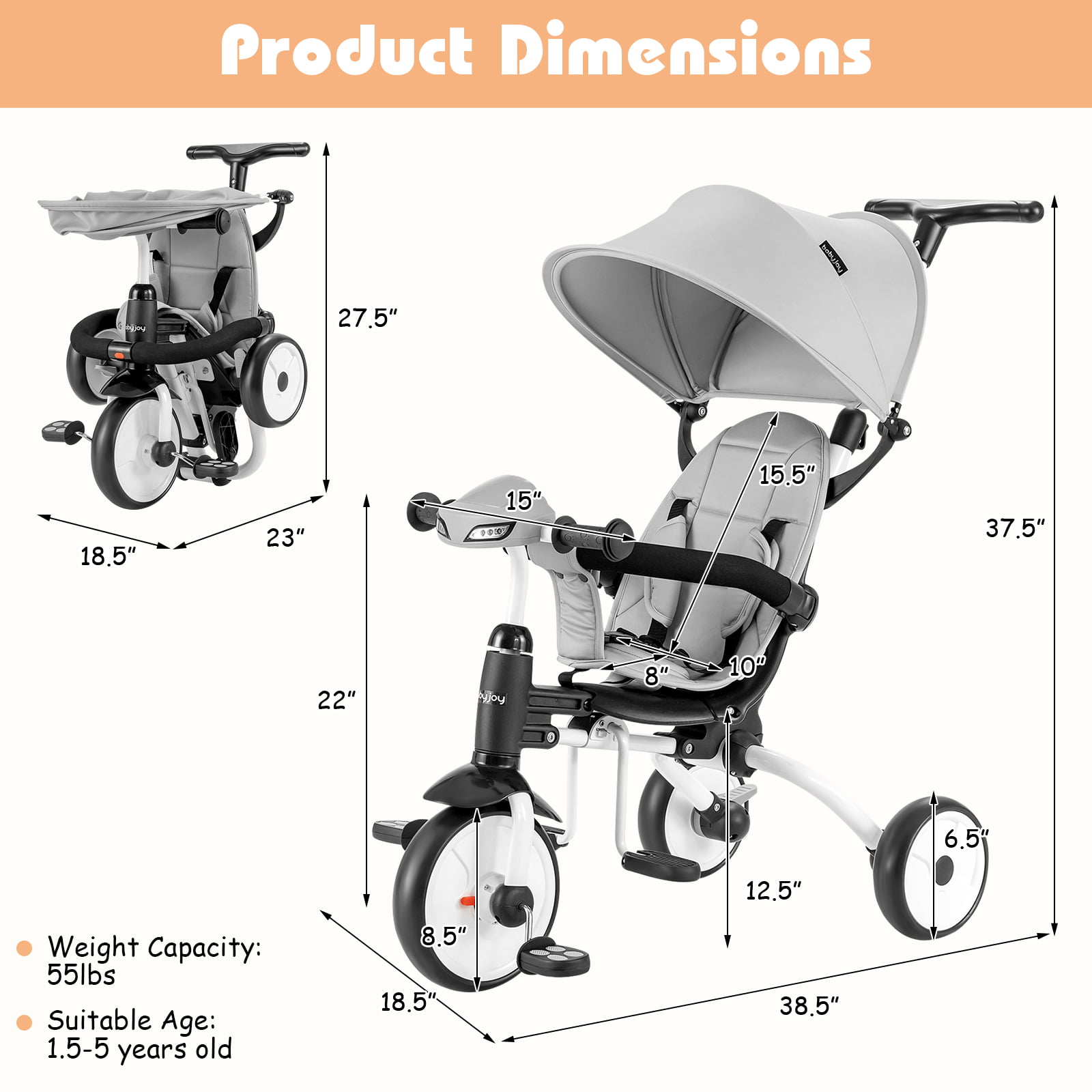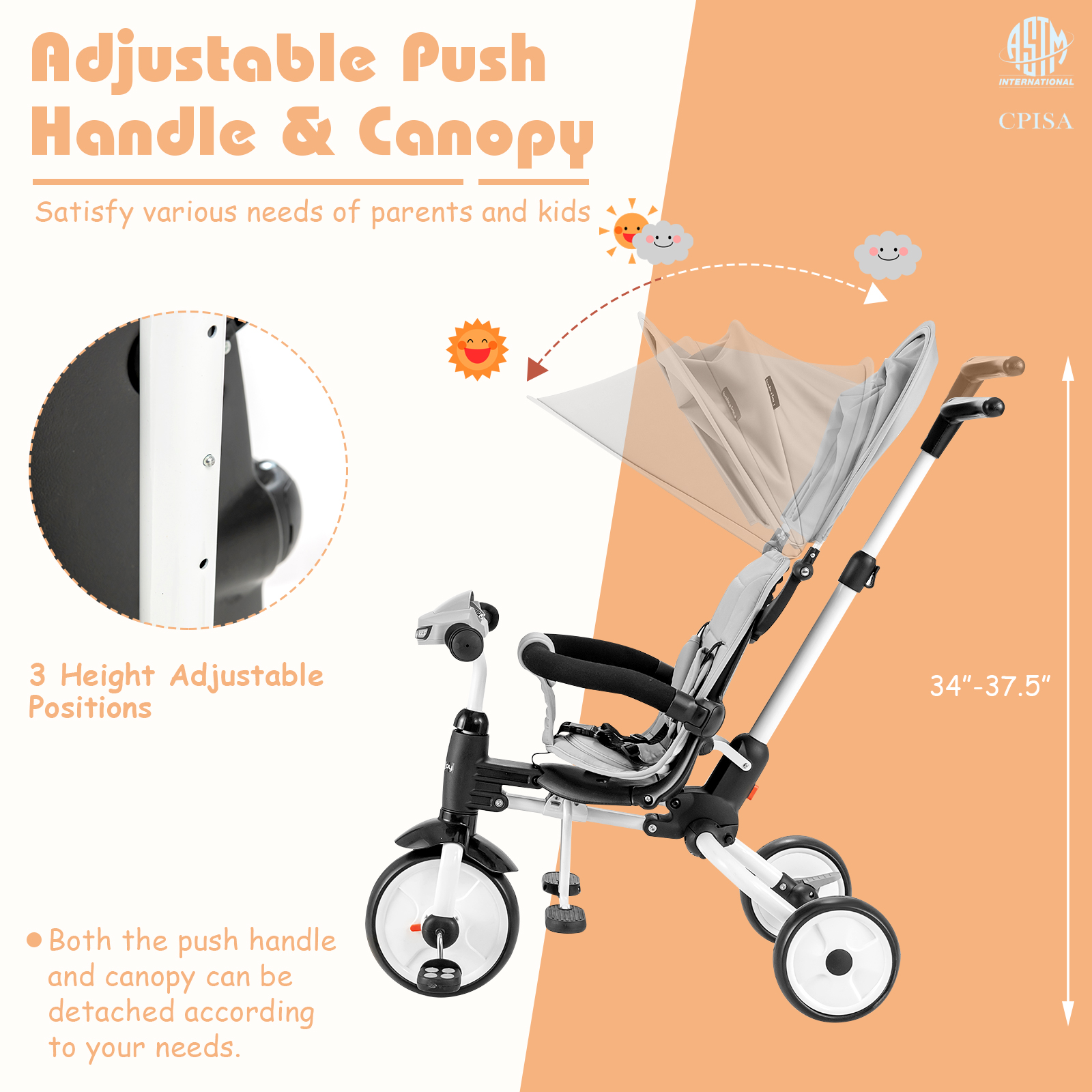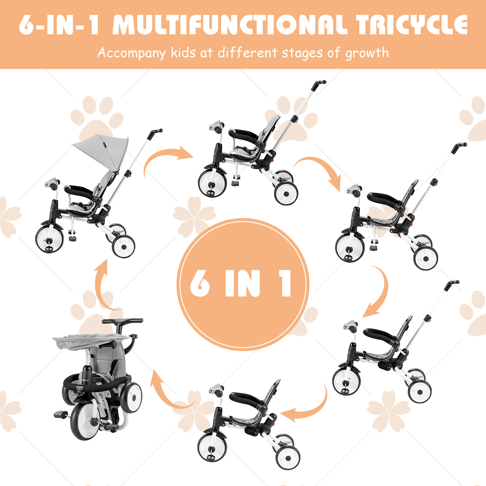 Infans 6-in-1 Folding Baby Tricycle Toddler Bike Stroller W/ Adjustable Handle Gray