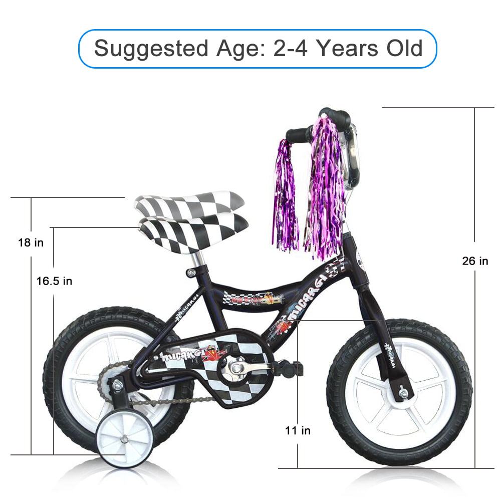 12 inch Kids Bike for 2-4 Years Old Kids. EVA Tires and Training Wheels