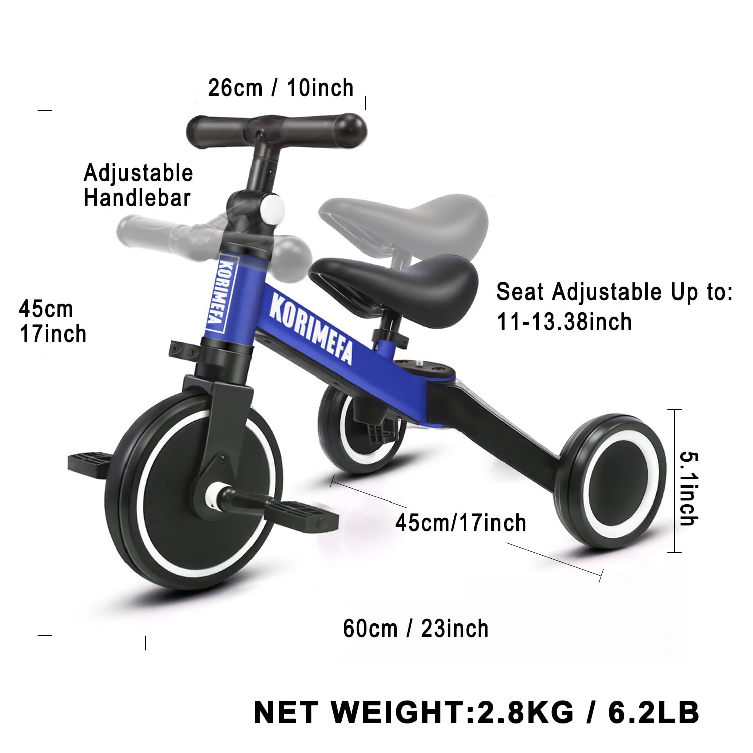 KORIMEFA 3 in 1 Kids Tricycle for 1-4 year olds. Toddler Bike Kids Trike for Balance Training. Baby Bike for Boy Girl