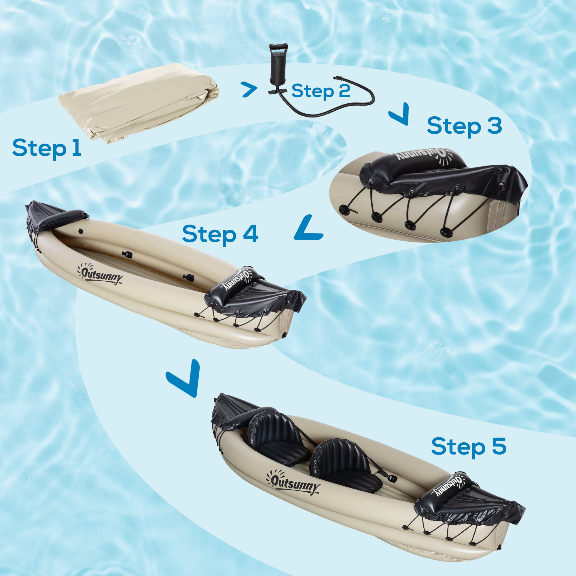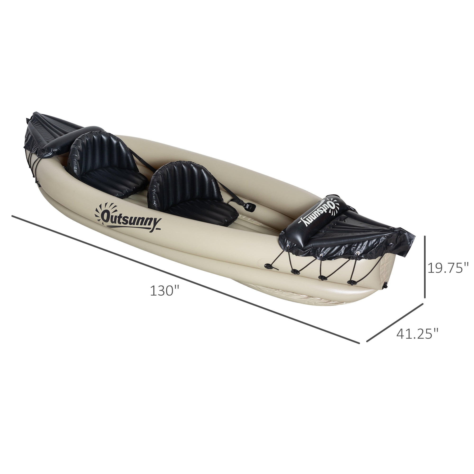 Outsunny 2 Person Inflatable Kayak. Includes Paddles. Repair Kit. Portable Tandem Blow Up Boat. Beige