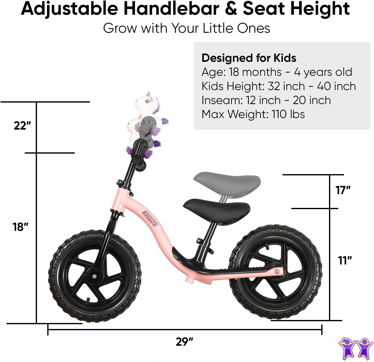 KRIDDO Toddler Balance Bike 2 Year Old. Early Learning Interactive Push Bicycle with Steady Balancing and Footrest. Pink