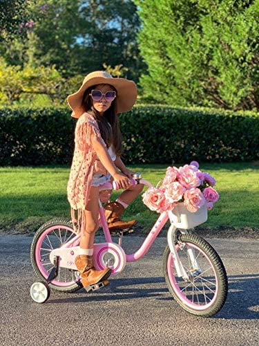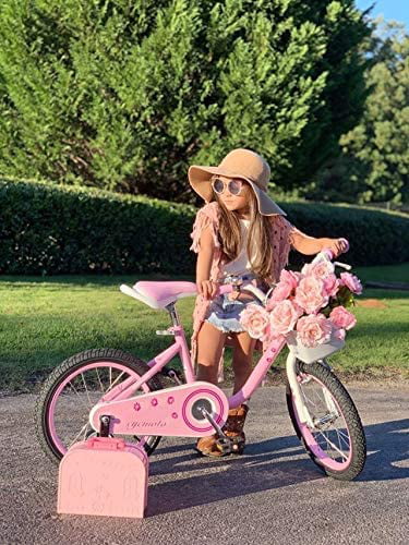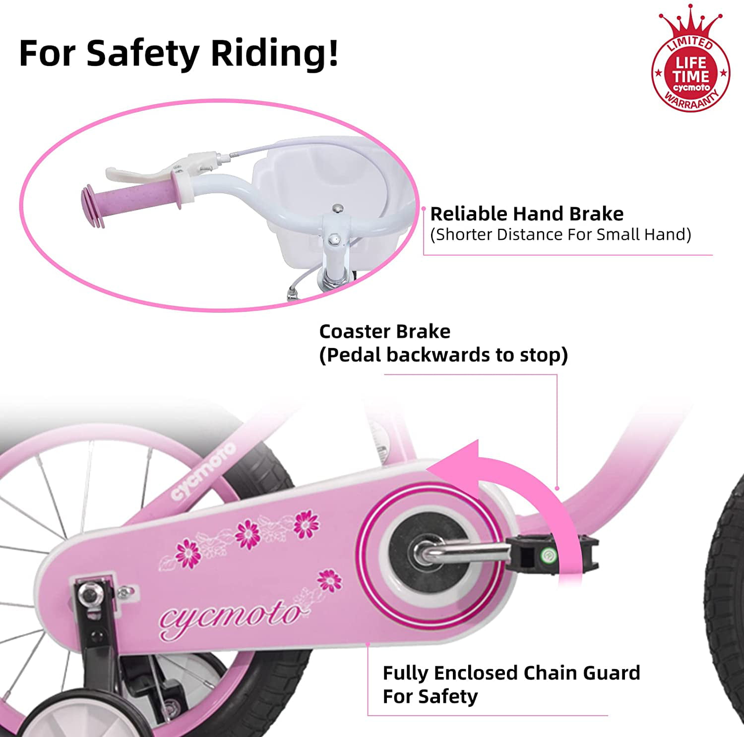 CYCMOTO Girls Bike for 3-9 Years Old Kids 14 16 Kids Bike with Training Wheels. Basket. and Hand Brake Color Blue Pink Purple