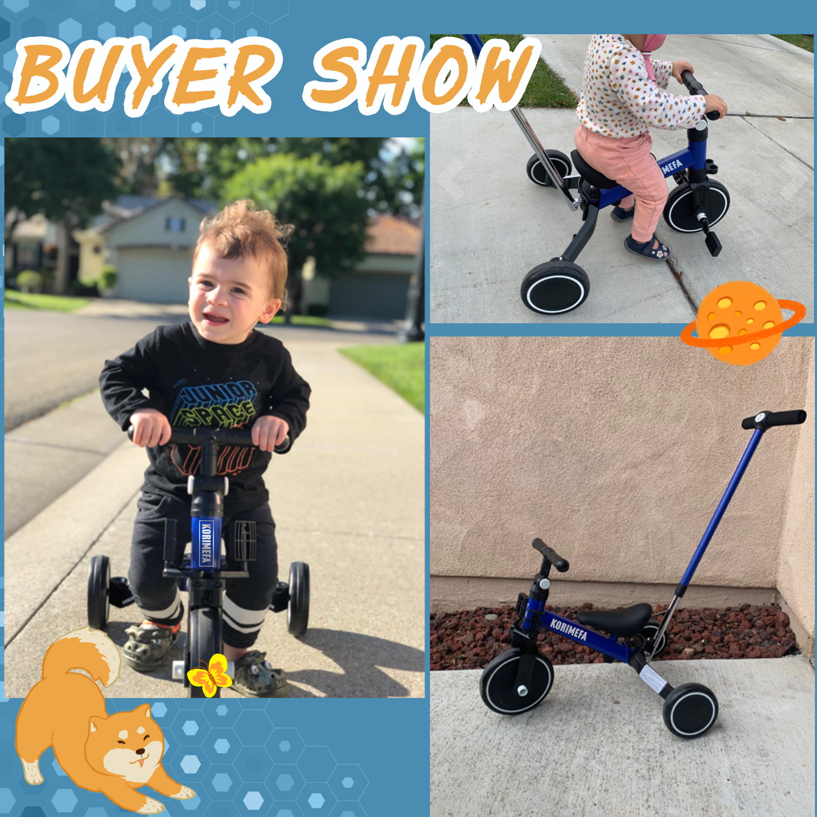 Costway 4 in 1 Kids Tricycles with Push Handle & Training Wheels Baby Balance Bike Navy
