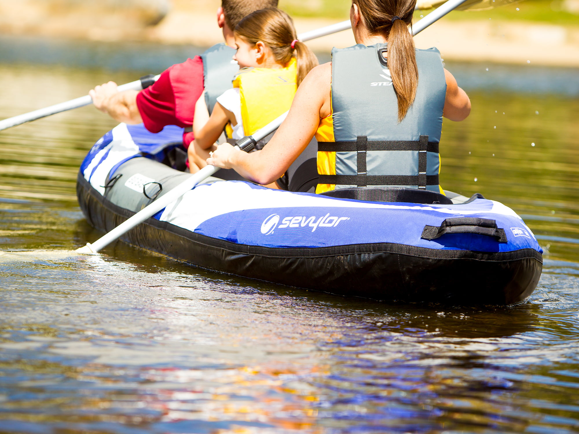 Sea Eagle 370 Deluxe 2 Person Inflatable Portable Sport Kayak Canoe w/ Paddles