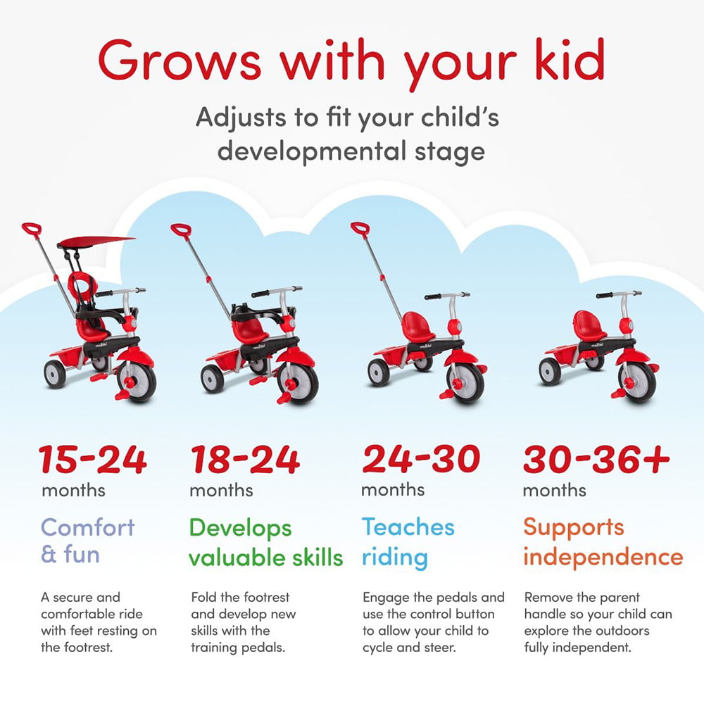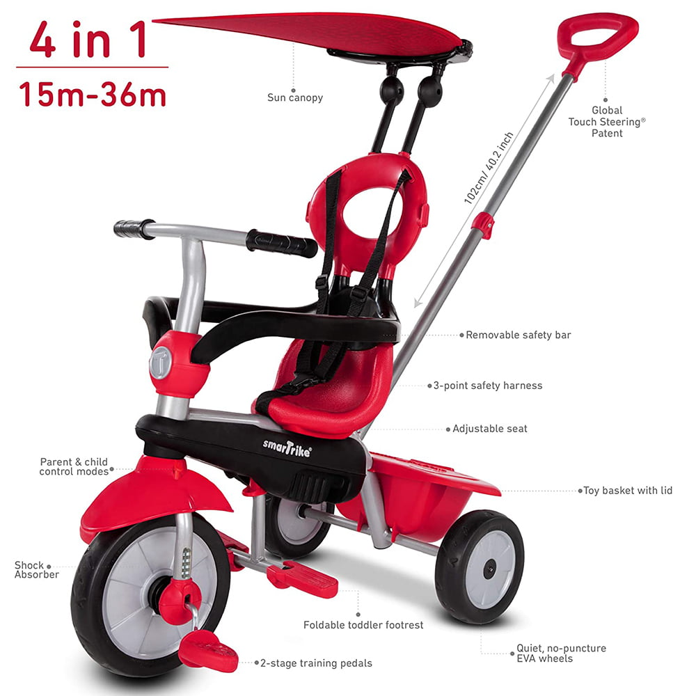 smarTrike Zoom 4 in 1 Baby Toddler Trike Tricycle Toy for 15 to 36 Months. Red
