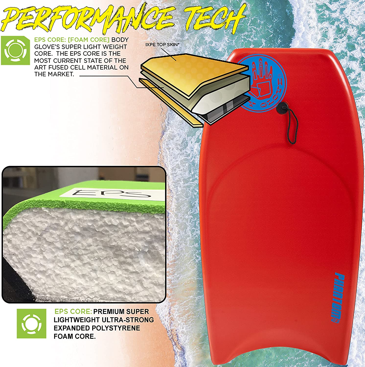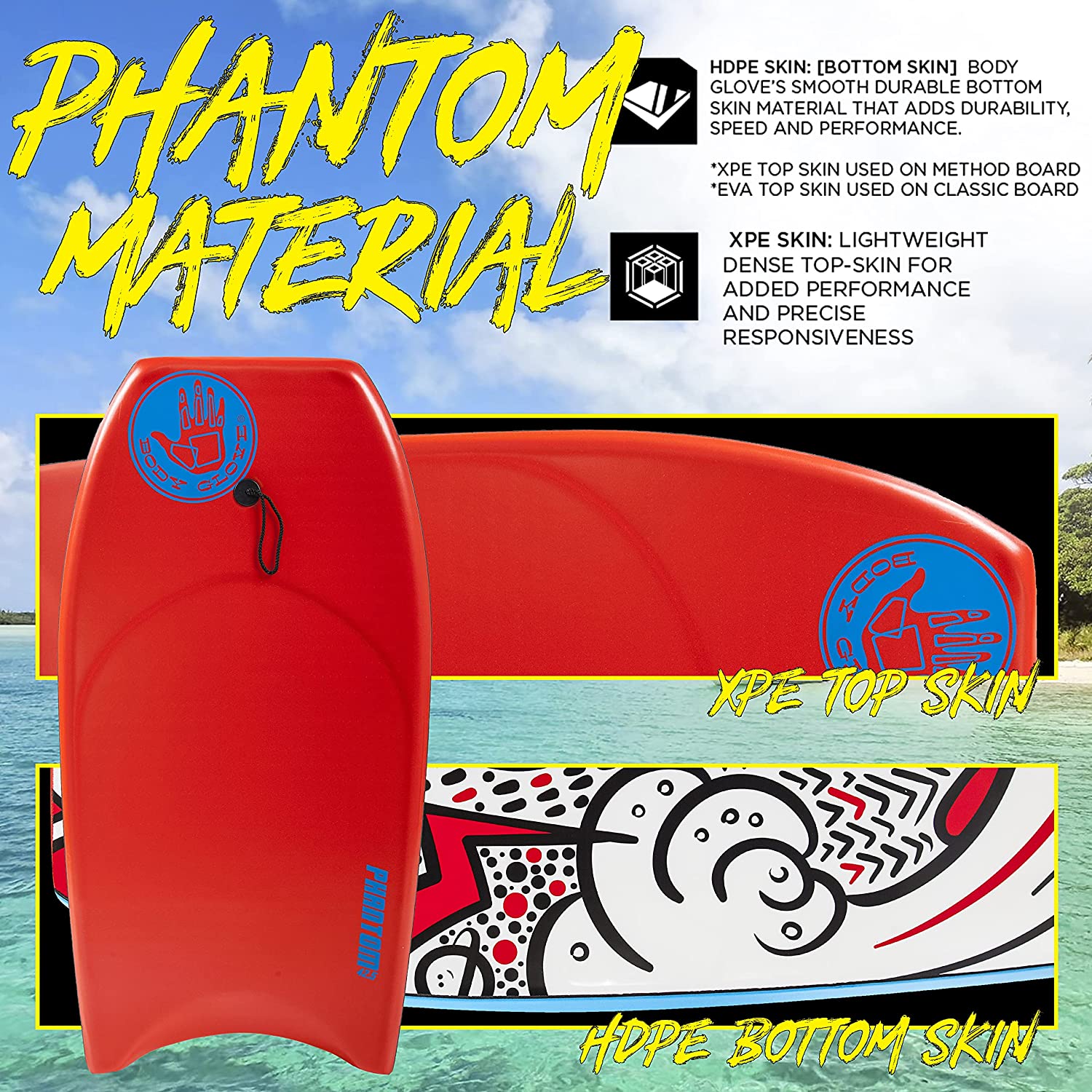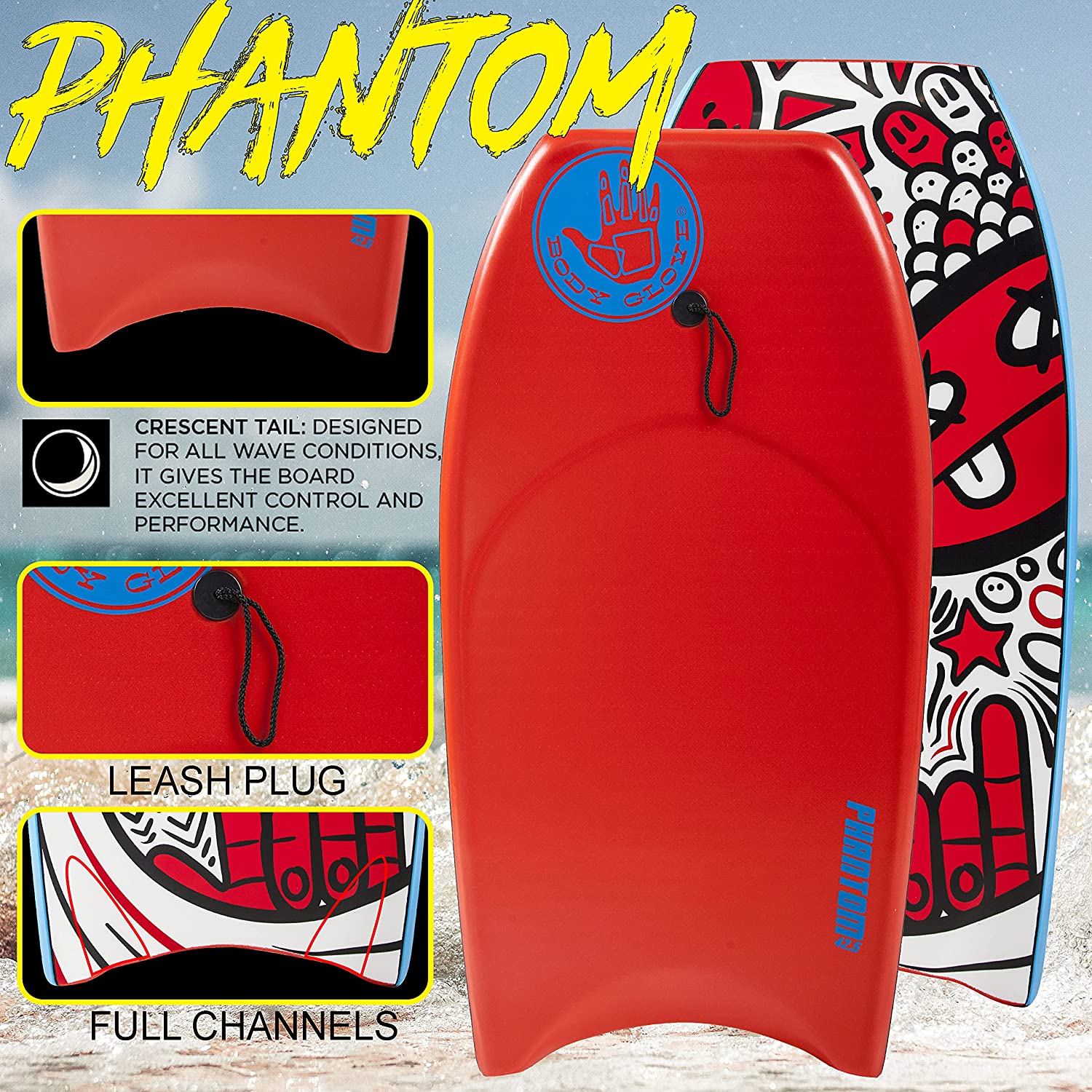 Body Glove Phantom 42.5 Inch Bodyboard - EPS Core. HDPE Slick. Crescent Tail. Graphic Slick. Includes Leash for Men. Women. Kids - Durable
