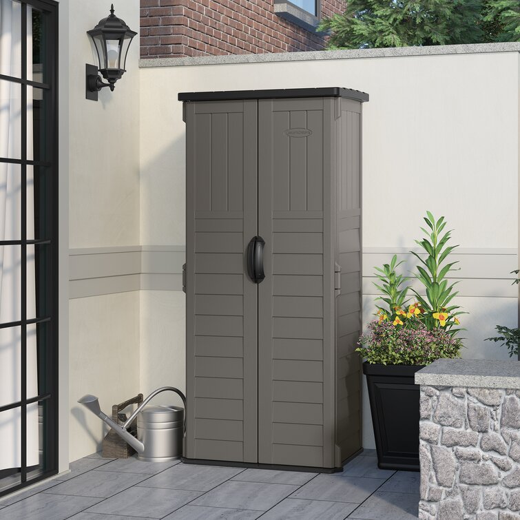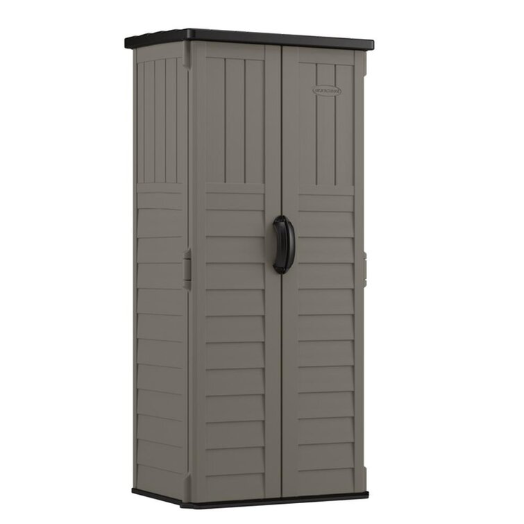 Suncast Outdoor Vanilla 2 ft 8-1/4″. W x 2 ft 1-1/2″. D Plastic Vertical Tool Shed