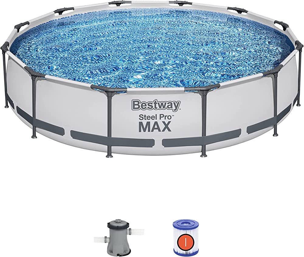 Bestway Steel Pro MAX 12 Foot x 30 Inch Round Metal Frame Above Ground Outdoor Backyard Swimming Pool Set with 330 GPH Filter Pump